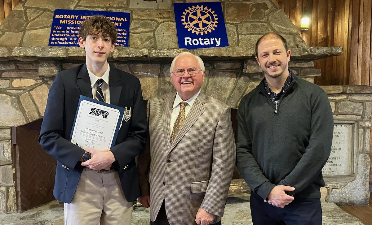 Tallulah Falls School senior William ‘Trey’ Greene of Demorest has been named Habersham County Star Student. The prestigious award was presented at the February 16 Habersham Rotary Club meeting by Habersham Chamber of Commerce President Ellie Van Doornum.