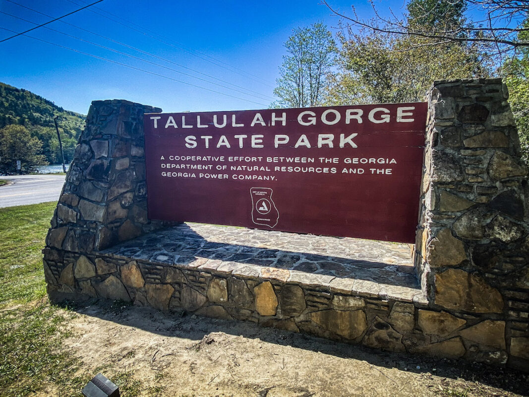 The trail begins a couple of hundred yards behind the center and descends into the gorge 310 steps to the suspension bridge. The bridge spans the Tallulah River approximately 80 feet below.