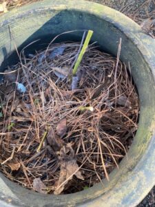 I don’t know about you but I’ve got plenty of mulch on the ground, mostly pine straw. Most of the trees in our yard are pines, although I have neighbors on either side that have cherry and maple trees. The winds of Delta blew enough that there is a mulch supply on the ground. While I’m not a fan of pine straw as a mulch, it’s free and I always rake it into my flower beds and around my roses to ‘tuck them in’ before winter. If you have hardwoods, then you probably have plenty of leaves to serve the same purpose.