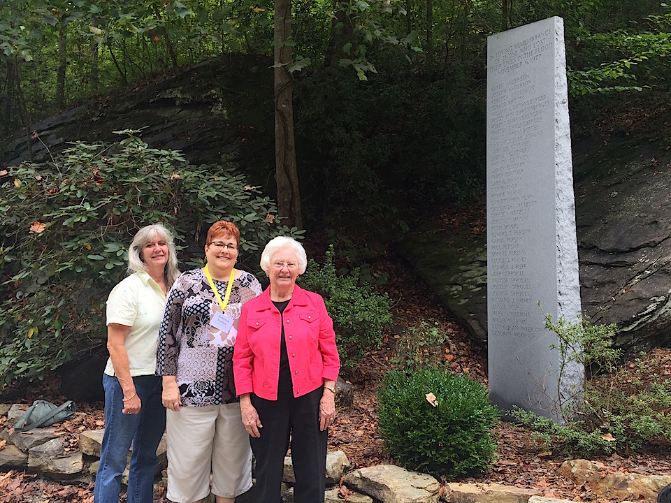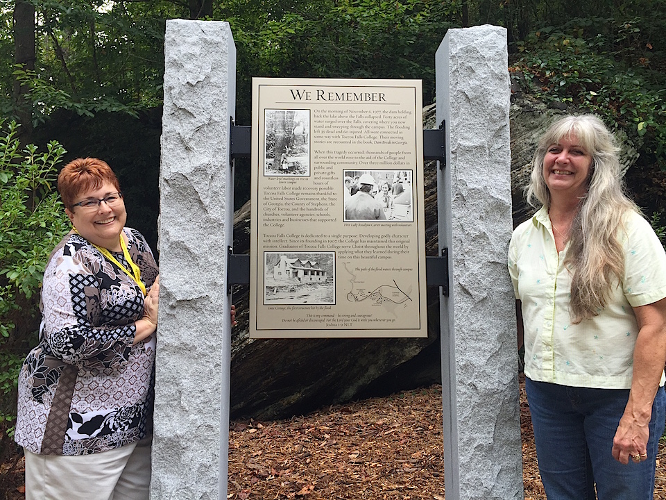 Teresa Graves Bill is among those who attended the service. She was a senior at Toccoa Falls College when the flood hit. “I think (it was) about 12:30 or 1 in the morning – my window was open and I remember terrible smells – and a young man from the boy’s dorm came running in screaming ‘The dam is breaking! The dam is breaking!'” She says, “We were quite confused.” She’d hiked up the falls and around the lake plenty of times prior to that morning, but Teresa says she never thought about what held back the water. In the chaos and confusion she found herself thinking “What dam?”