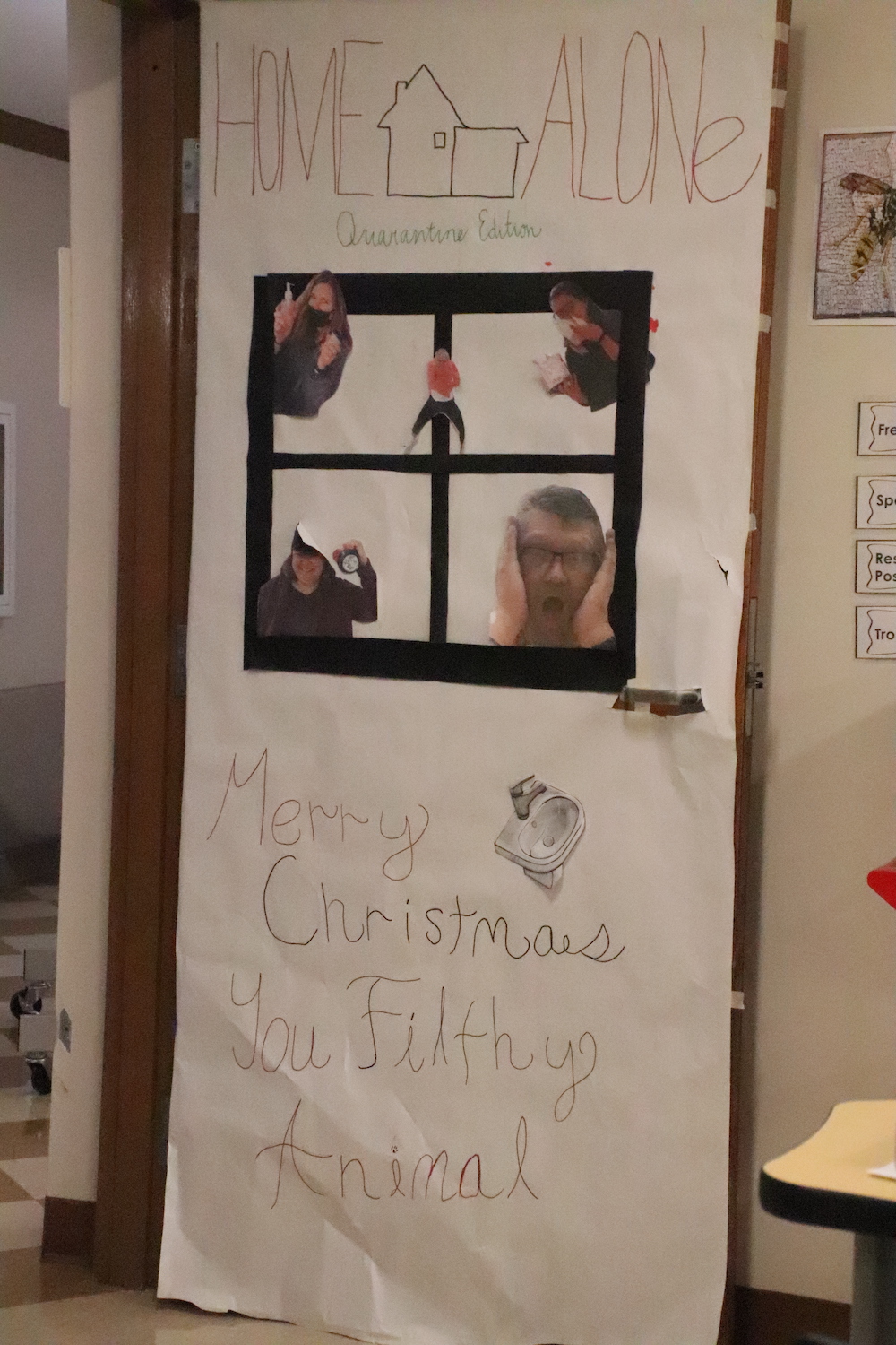 A spirited take on the theme of 2020 - "We're All In This Together" - greets visitors on the door to Kim McClurg's classroom at Tallulah Falls School. This was among the entries in the school's door decorating contest. (E. Lane Gresham/Tallulah Falls School)