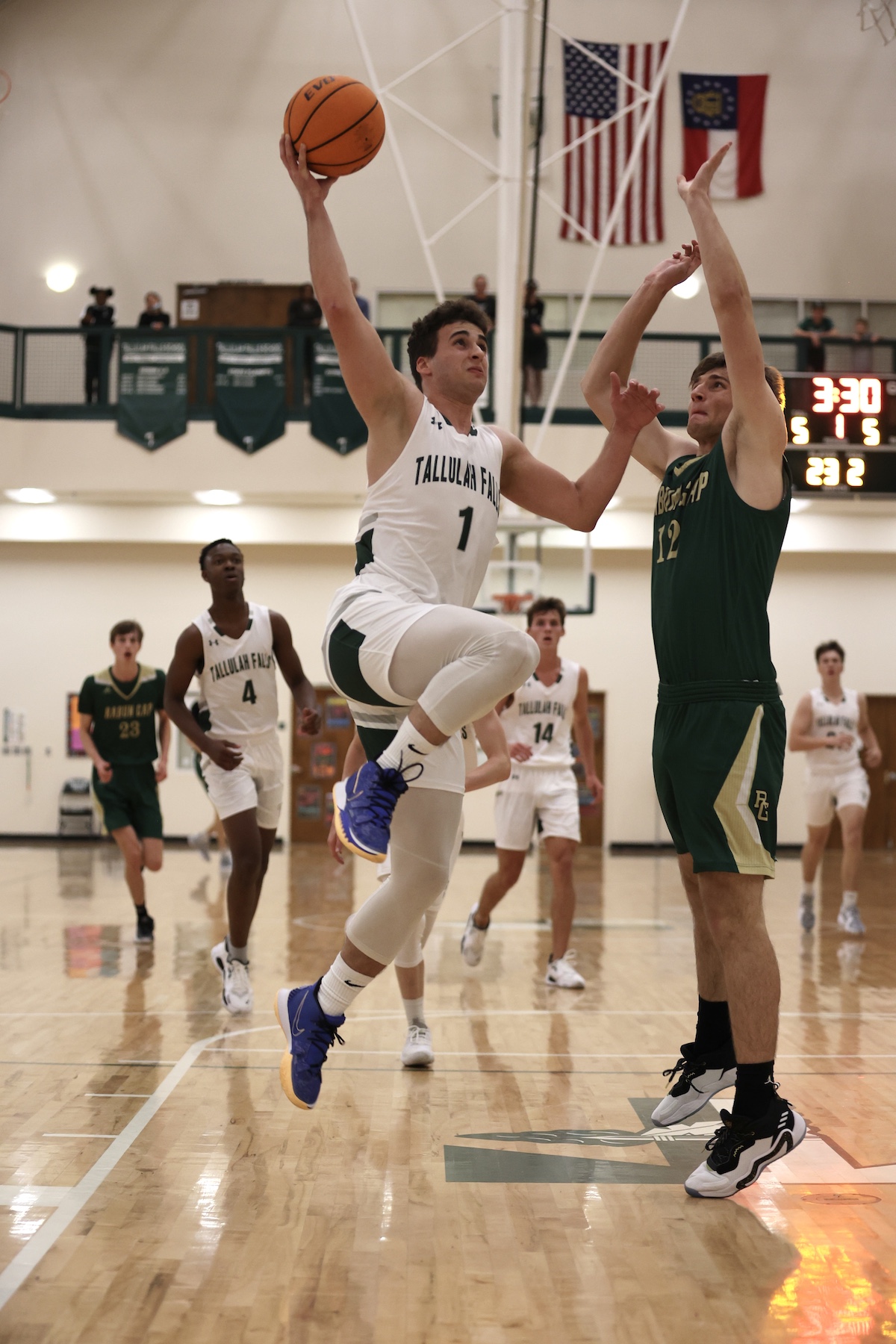 The second half saw Rabun Gap pull away, though TFS got the crowd ignited when both Devonte Allen and Hanna threw down thunderous back-to-back dunks, and Hanna added a 3-point play to pull within 45-27. By the end of the third, however, the Eagles held a sizeable 63-31 lead on the way to a 71-46 final.
