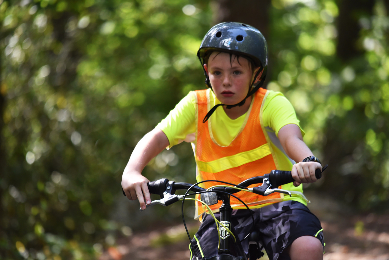 7th-grader Haygen James of Demorest moments before crossing the finish line during the 2019 Tallulah Falls School quadrathlon. (Brian Boyd/Tallulah Falls School)