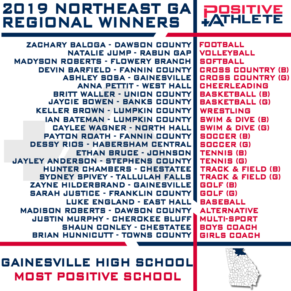 The organization seeks to recognize athletes who have overcome difficult circumstances, given back to their schools and communities or manifest an infectiously positive attitude. Positive Athlete Georgia has to-date awarded more than $100,000 in college scholarships. Athletes or coaches are nominated by parents, coaches, teachers, administrators or fans.