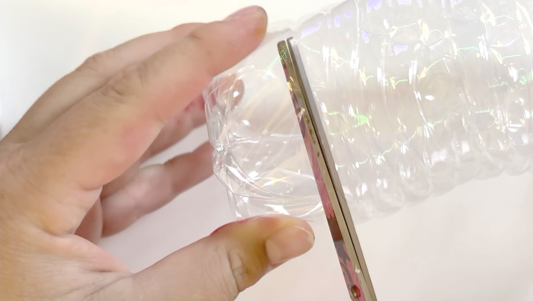 b. You can use all parts of the plastic to make unique pieces, for example, the bottom of a plastic bottle can resemble a flower.