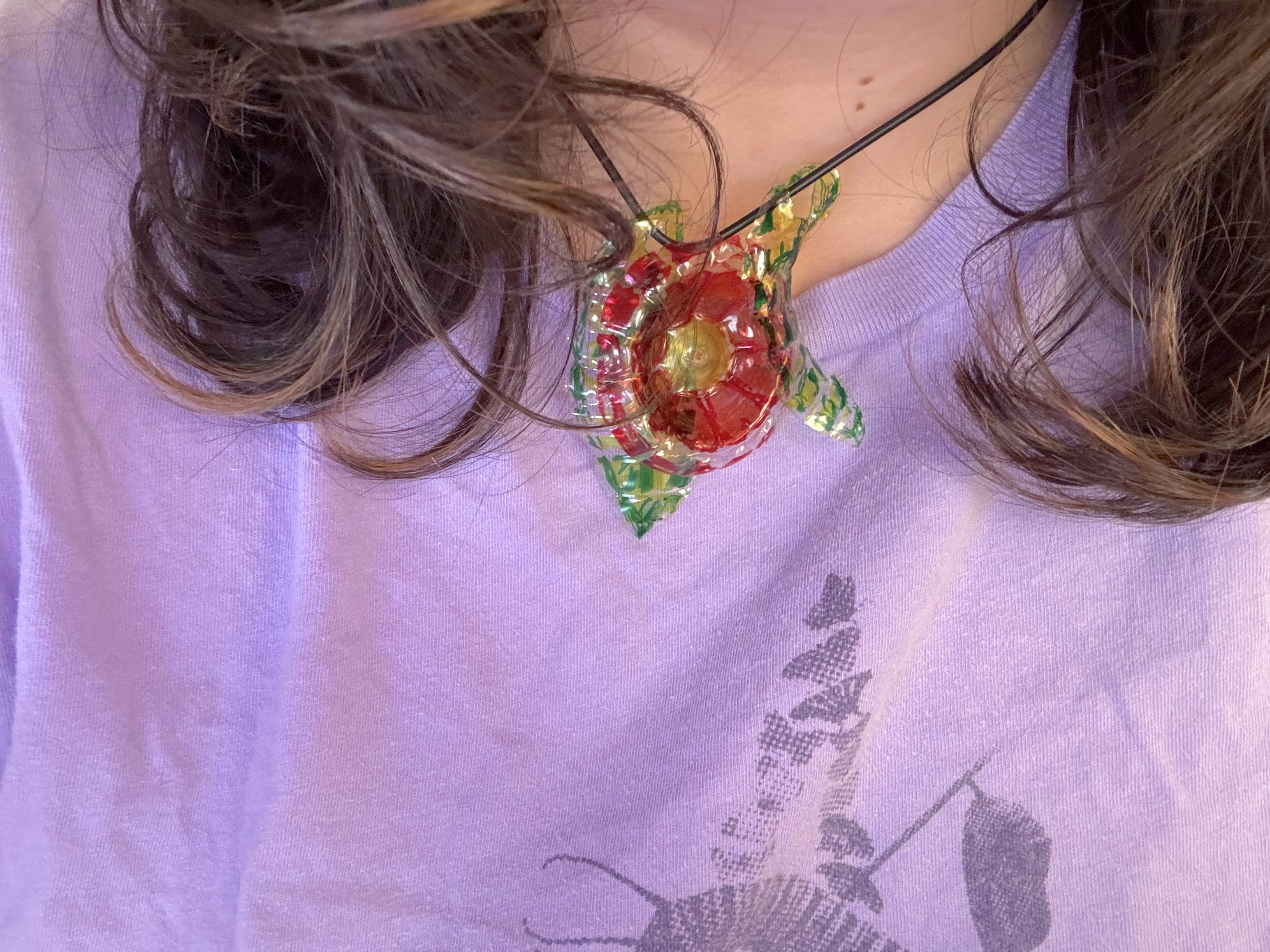 9. Once the plastic is cool, use string to turn your creation into a necklace or a keychain.