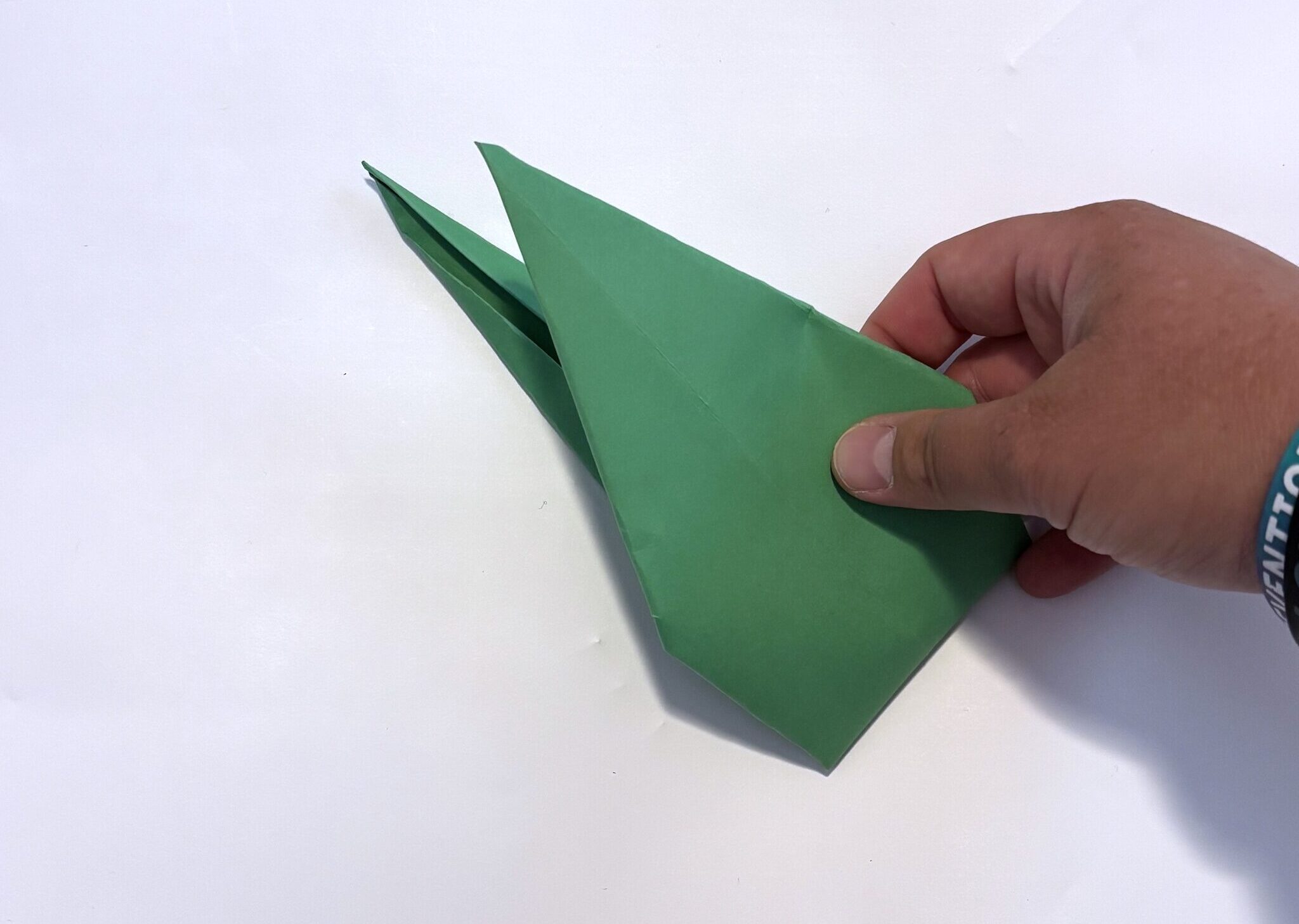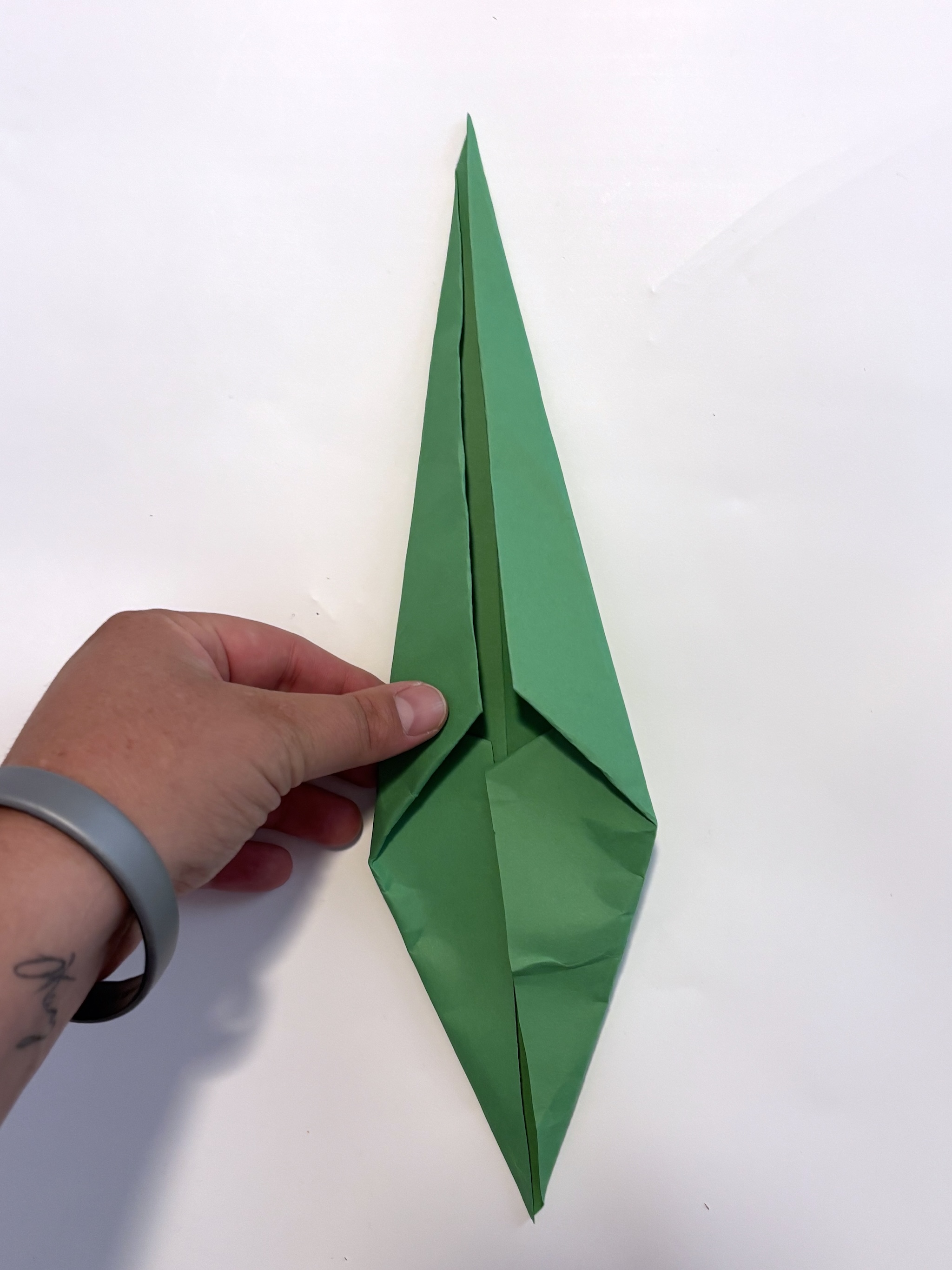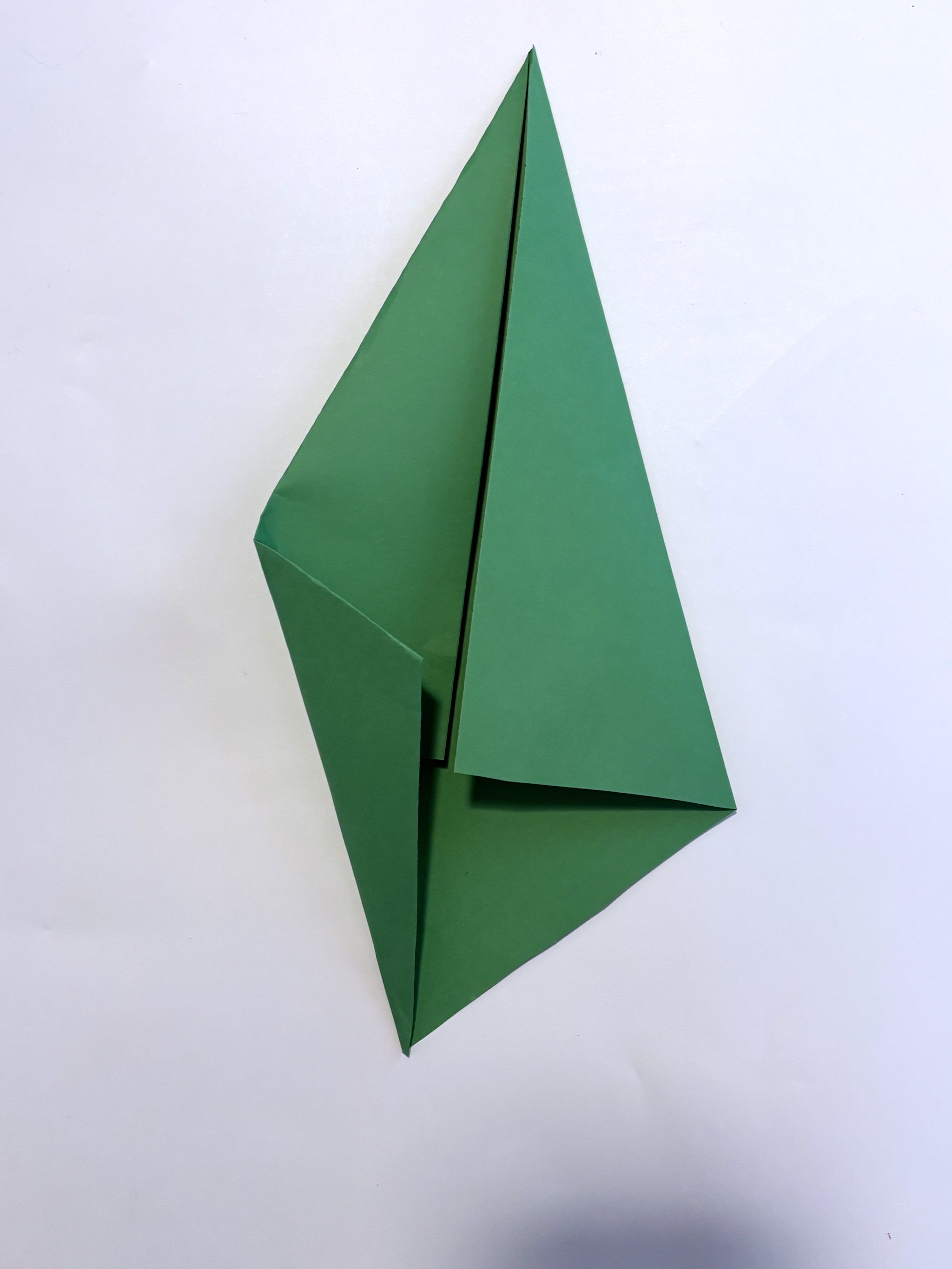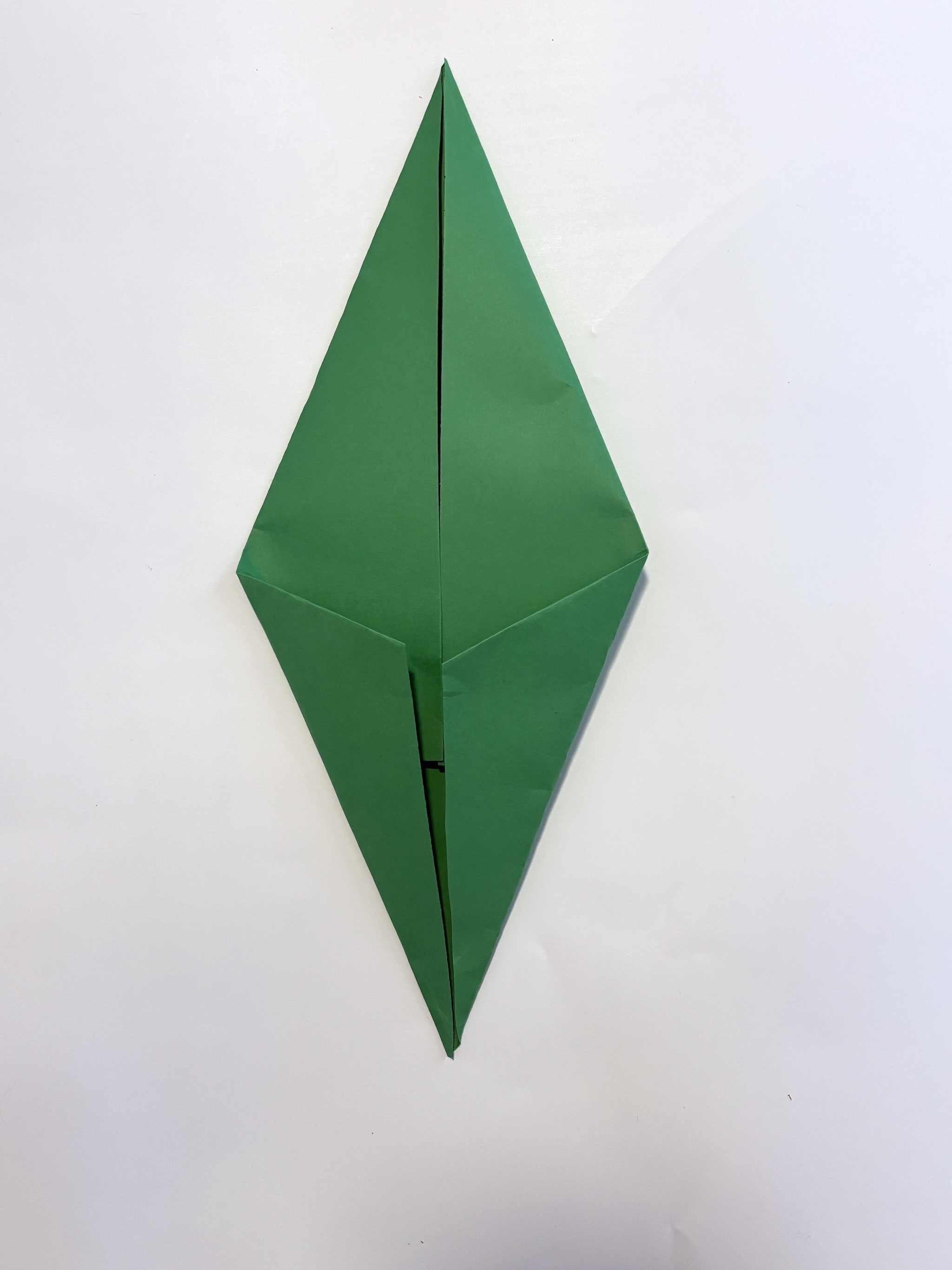 14. Slightly pull the two points apart making a leaf. Press down at the bottom to crease the fold.