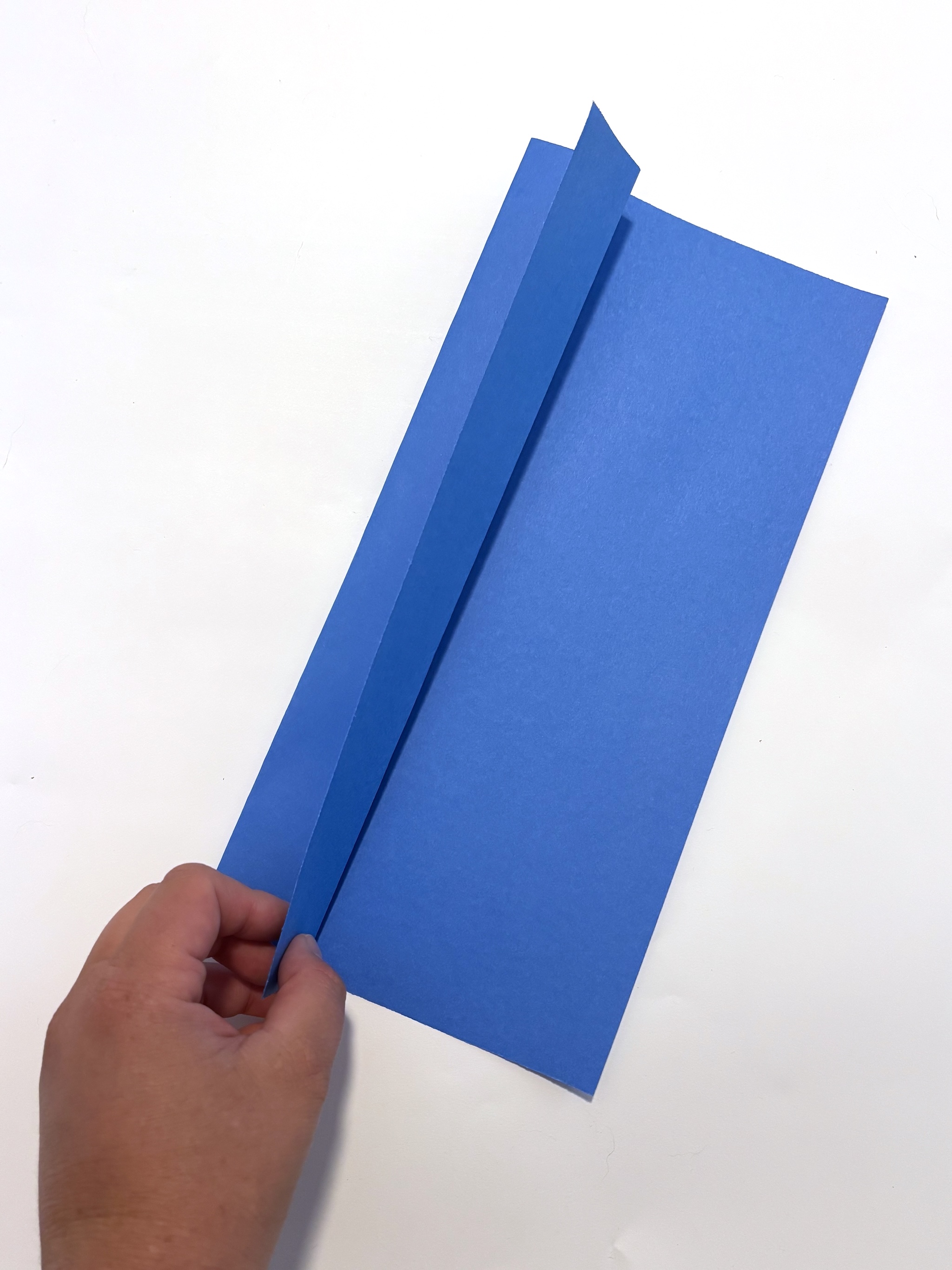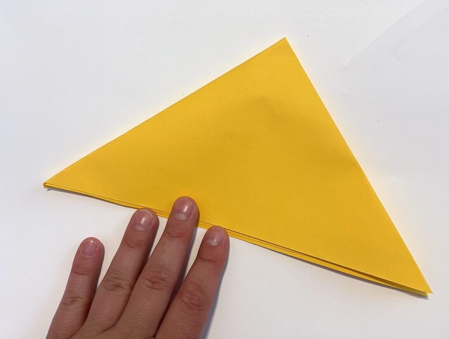 4. Fold the triangle in half creating a crease from the top point down.