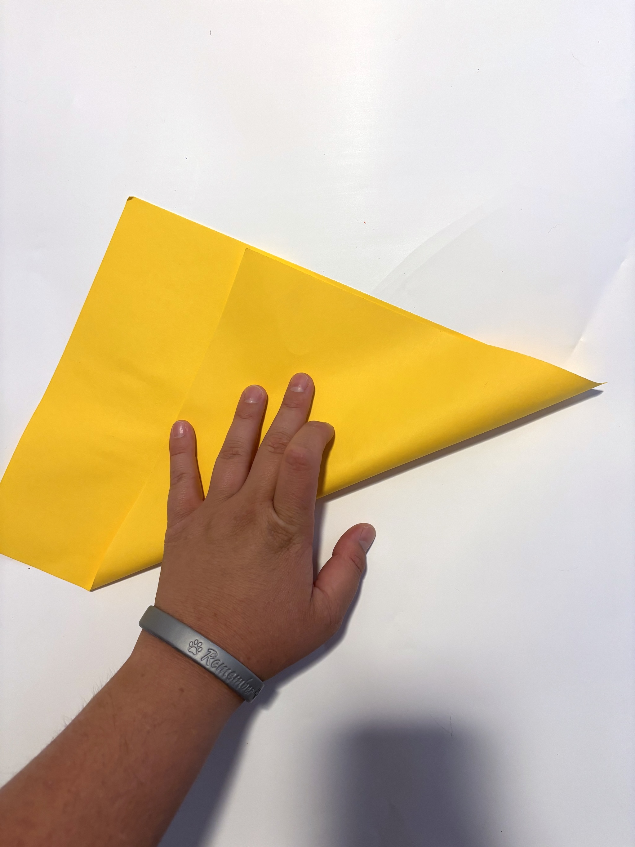3. Turn the paper into a triangle by folding one corner diagonally to another corner.