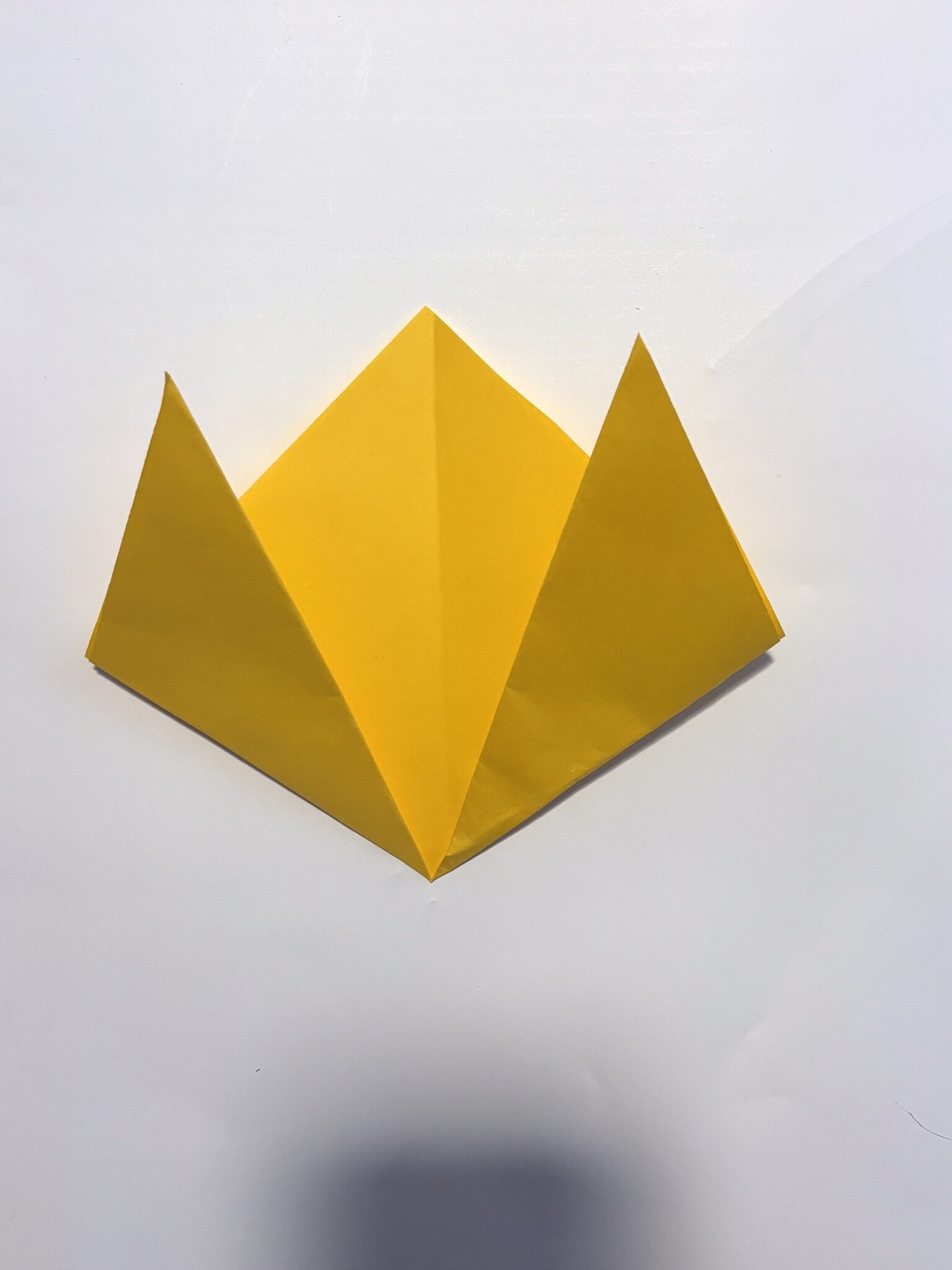 11. Repeat this step one more time with the right and left corners. Folding towards the diagonal crease every time.