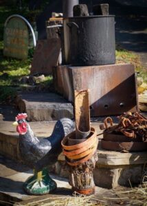 Outside Sunrise Grocery is a rustic display and a boiling pot of peanuts. (Margie Williamson/Now Habersham)