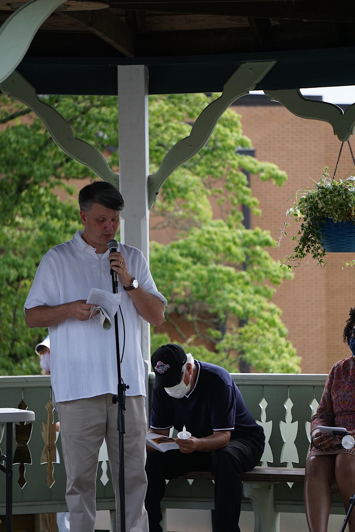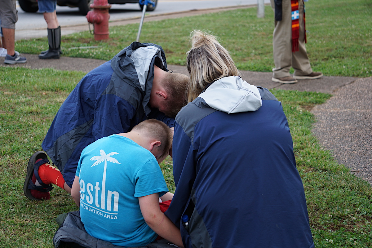 Despite severe storm warnings on Wednesday night, over 80 people gathered at the Clarkesville gazebo to pray together. The prayer vigil was also live-streamed by Now Habersham. By 8:30 Wednesday night, 3,400 people had virtually participated in the event.
