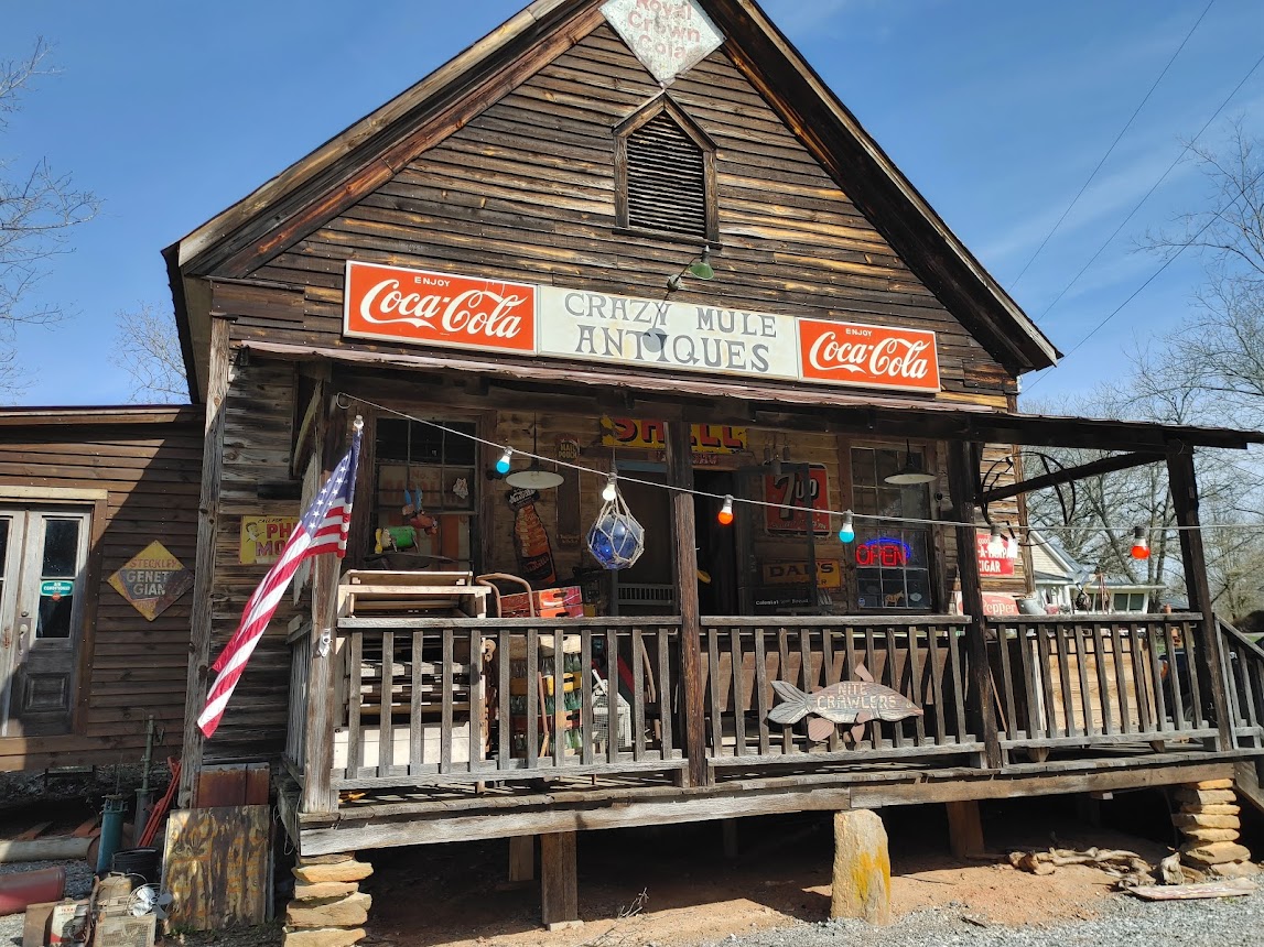 Stepping into Crazy Mule Arts and Antiques is like stepping back in time. Housed in a former general store, the weathered clapboard building has managed to evade the kind of renovations that rob a place of its character. So walking around inside this cool space chock-full of interesting vintage and antique pieces is a bit like walking around in a time capsule.
