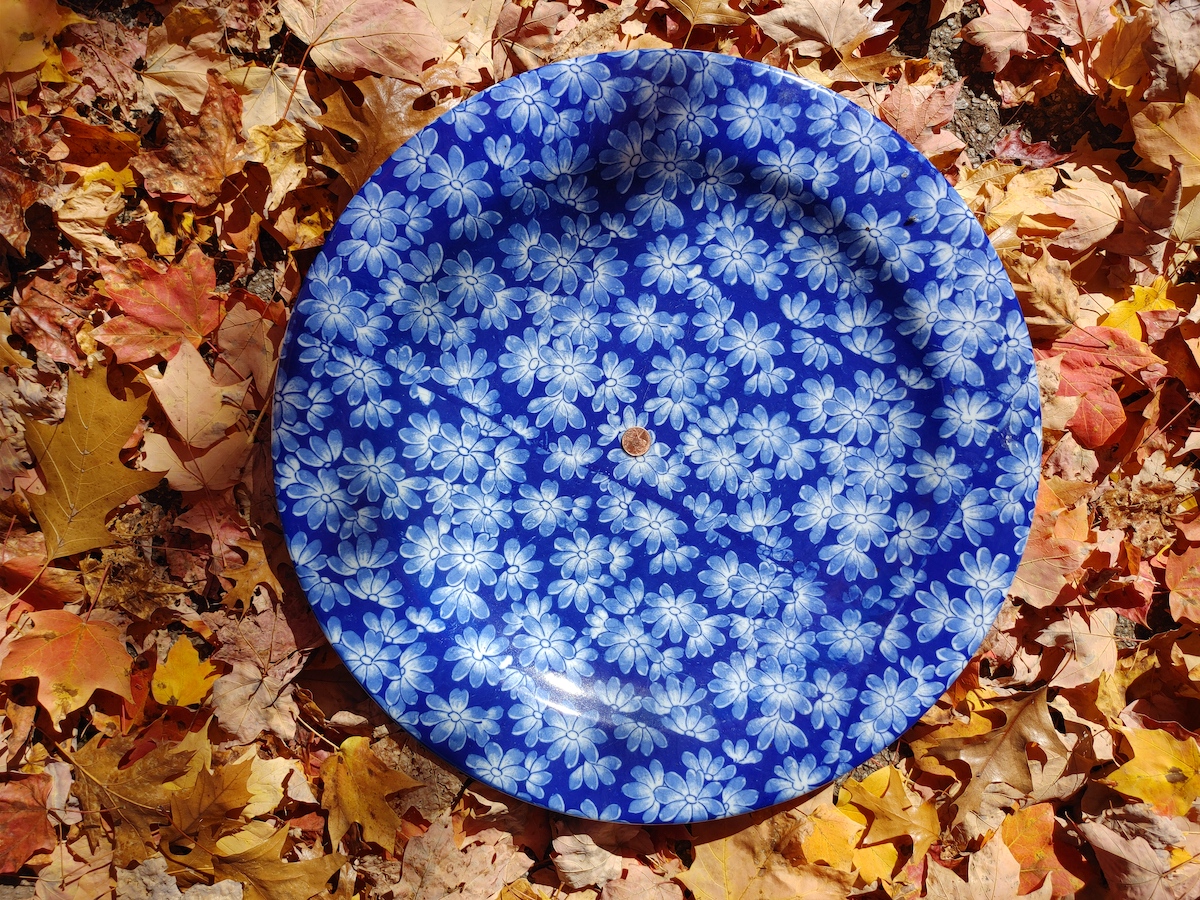 The platter was too heavy to lug around, so I took it to the counter for them to hold while I checked out the rest of the store. When I handed it to the extremely nice sales lady she exclaimed, “That was just brought in here this morning and I had no idea she’d only marked it nine dollars!” Another customer overheard this. Thinking some of my luck might rub off on her, she gave her small white dog these instructions: “Follow her! We need to follow her!”
