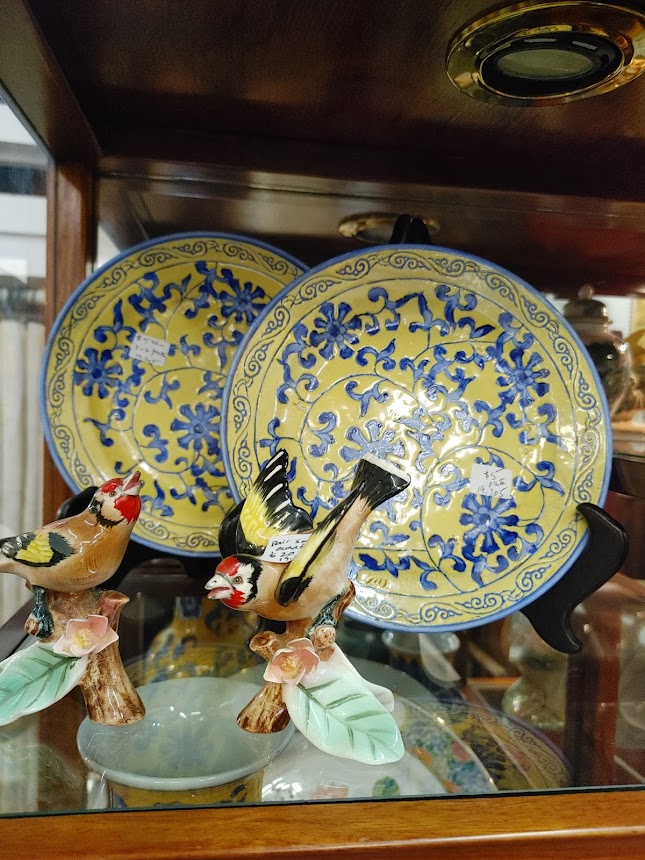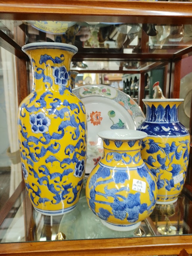 One of my favorite finds at this store was a whole collection of blue and yellow plates and vases. I was thrilled when I looked at the date on the price tag and realized they had been in the shop for over 90 days, so they were deeply discounted to just $1 to $4 per piece. I priced them from $5 to $20 per piece, and they didn’t last nearly 90 days in my shop!
