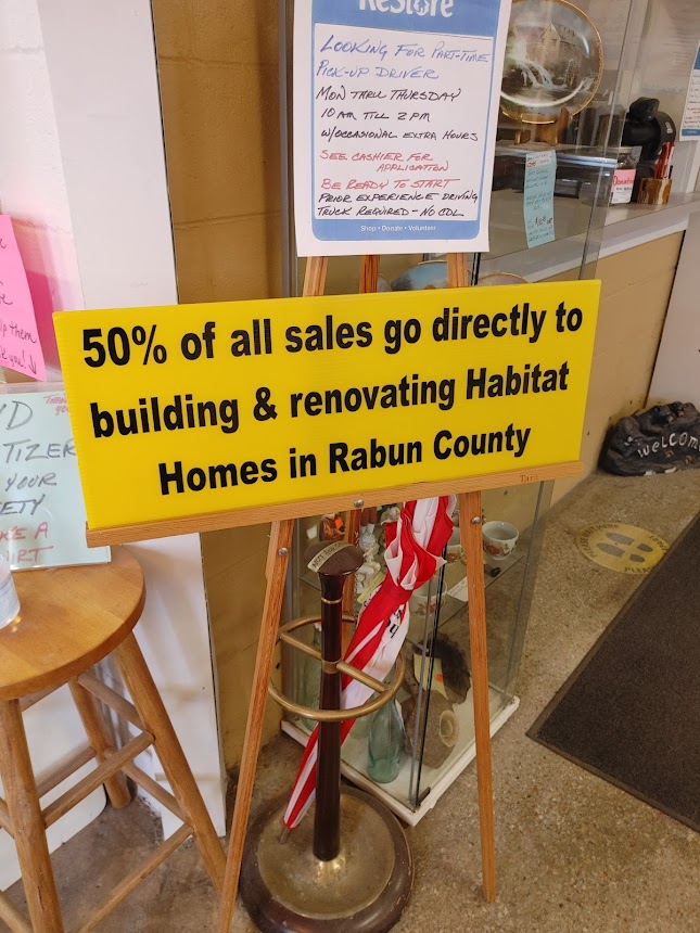 While the prices are already reasonable at this ReStore, the savvy shopper will pay attention to the blue signs posted around the store while noting most of the inventory has dates on the price tags. Things that have been in inventory for 45 days or more are reduced.