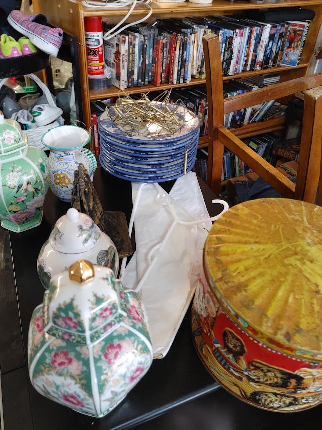Upon stepping inside, I was greeted with stacks and piles and shelves brimming with an amazing variety of stuff! The first thing I homed in on was a vintage ginger jar. It didn’t have a price tag, so I picked it up and called to the proprietor behind the counter.