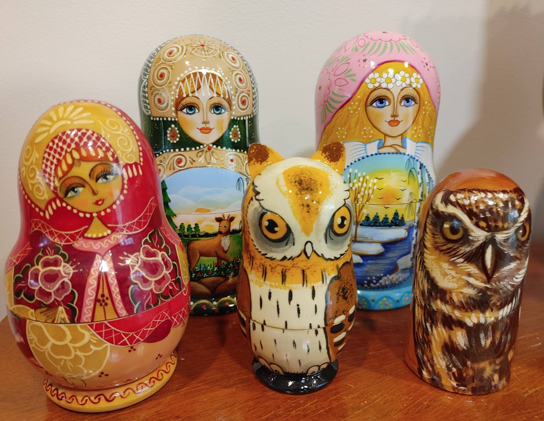 I was thrilled to come across a whole bunch of Russian nesting dolls priced from $6- $10. These routinely sell in my shop for $15 to $68 a set, so I purchased all the doll-shaped ones in stock and two owl sets too!