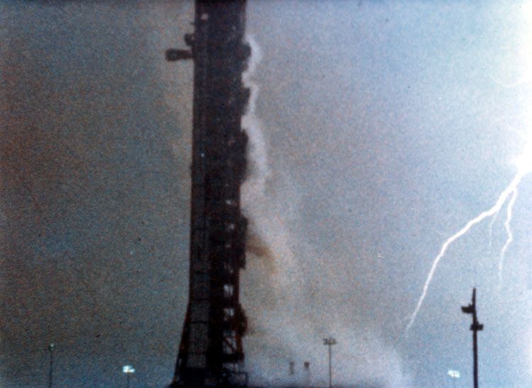 Despite there being no proper thunderstorms in the vicinity Apollo 12 was struck by lightning not once, but twice. The static discharge from the rocket itself triggered two separate lightning strikes. The first occurred 36 seconds after launch and knocked all three fuel cells offline. The second occurred at 52 seconds and knocked the attitude indicator out. After a very confused few seconds mission control made a call to try a specific, obscure switch that Lunar Module Pilot Alan Bean remembered and flipped. This brought the fuel cells back online and mission control was once again able to see what was happening with the rocket. No other problems occurred due to the strikes, but the astronauts spent extra time in Earth orbit before departing for the moon to check out the craft. One can only imagine what could have happened had Alan Bean not remembered exactly where that obscure switch was.