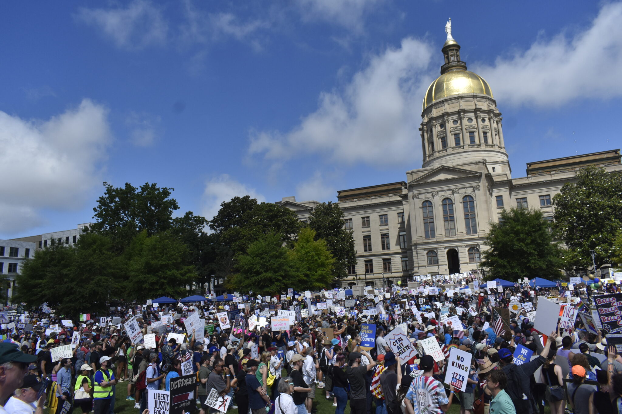 (Georgia Recorder) — Minutes after Atlanta’s “No Kings” protest began Saturday outside the state Capitol, organizers announced that the venue’s 5,000-person capacity had been reached.