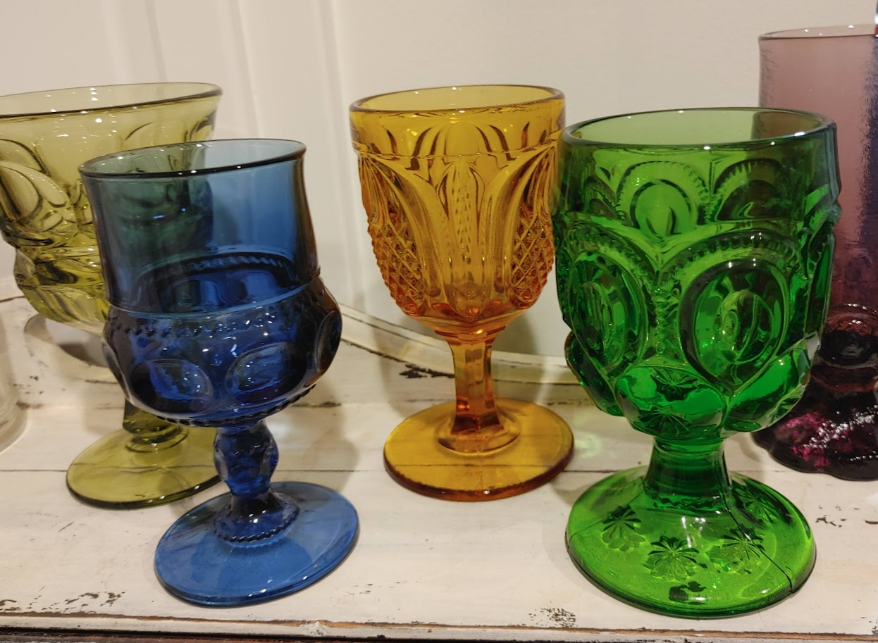 Now that I knew a bargain could be struck, I backtracked through the store, grabbed a set of four mid-century Colony Sapphire Blue goblets and asked for a better price on those too. We settled on $25 for four, which was perfect for me, because I am building a set of different colored mid-century goblets for my daughter. I added one of these to the set, and sold the others for around $12 each, thereby making a profit while adding to a collection.