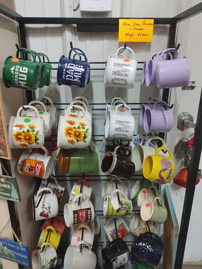 Enamel over tin sells well for me, so I picked up a few of the enamelware mugs with plans to sell them for $5 each in my brick-and-mortar shop.