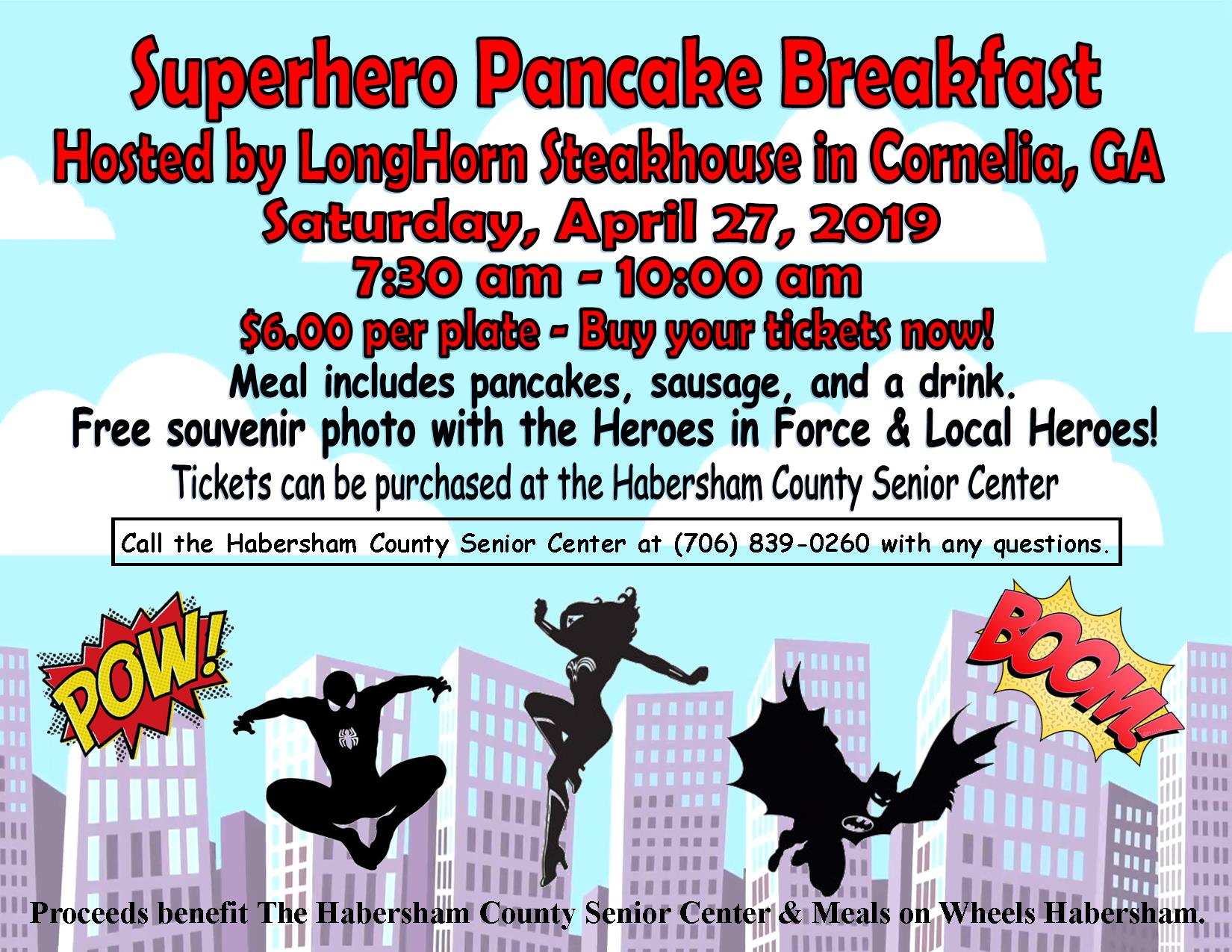 Tickets are now on sale for a Superhero Pancake Breakfast to benefit the Habersham County Senior Center and Meals on Wheels.