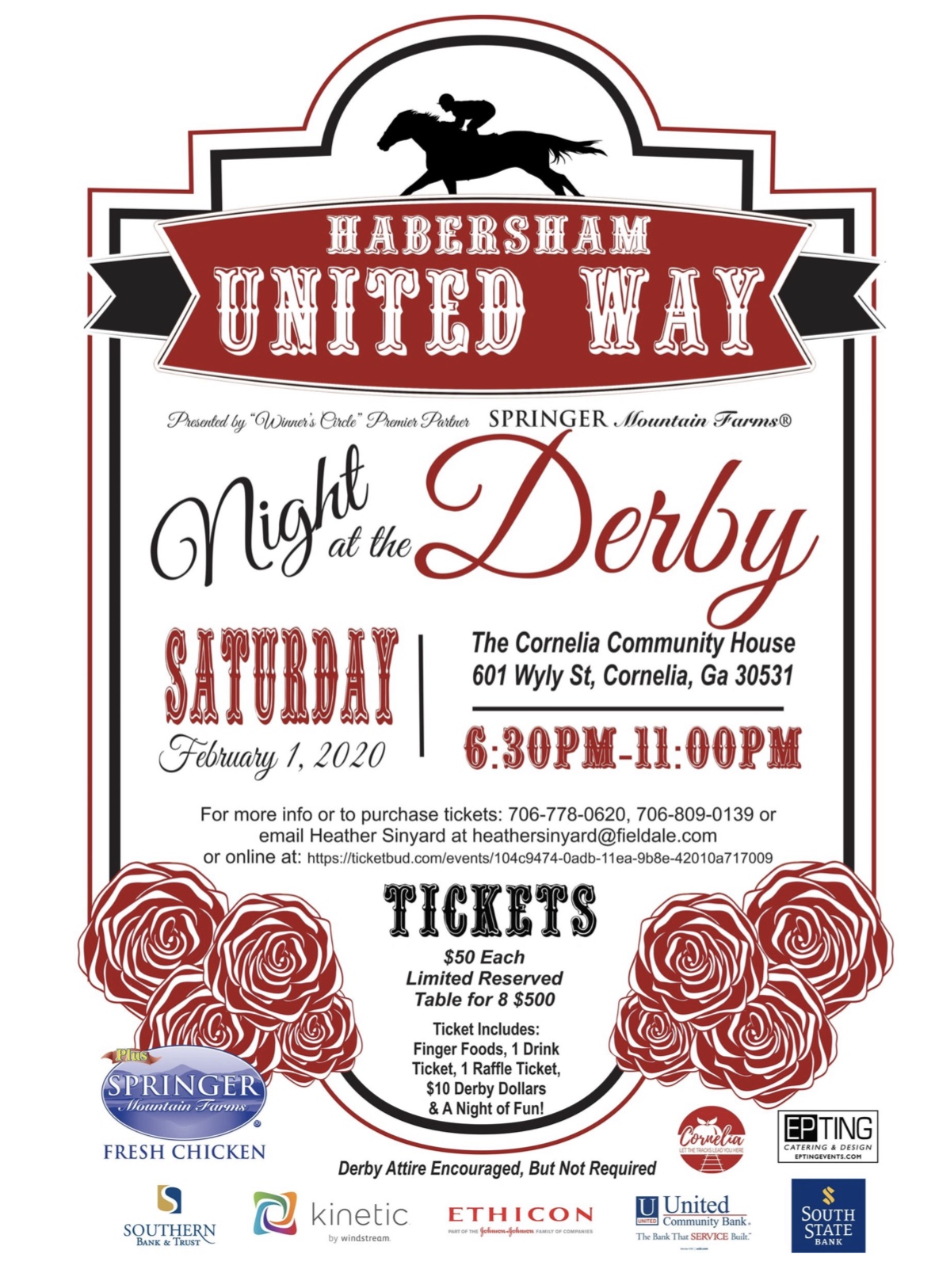 Join Habersham County United Way Saturday, February 1st, 6:30-11:00 p.m., at the Cornelia Community House for the second annual Night at the Derby.