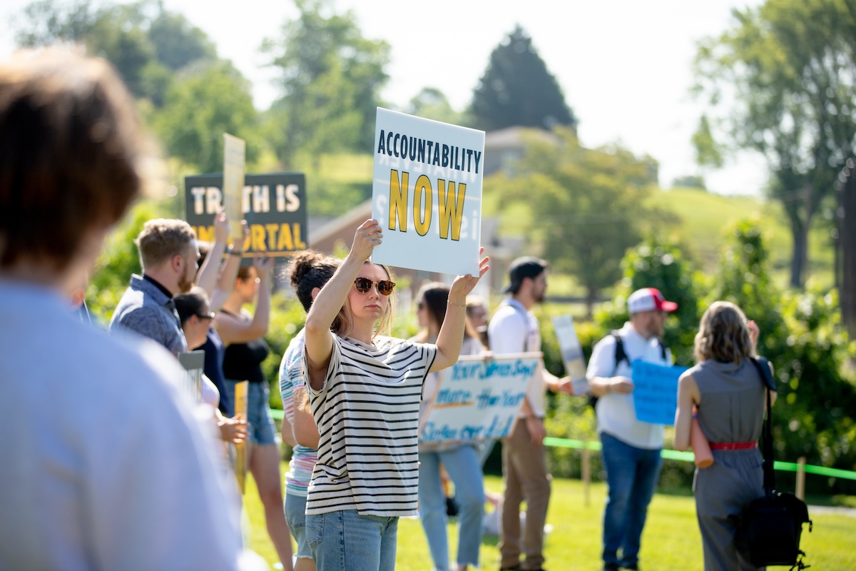 The alumni, many of whom identified themselves, called for the university to relieve faculty and staff of their nondisclosure agreements so that alumnus Hayle Swinson’s allegations of sexual abuse could be thoroughly investigated.