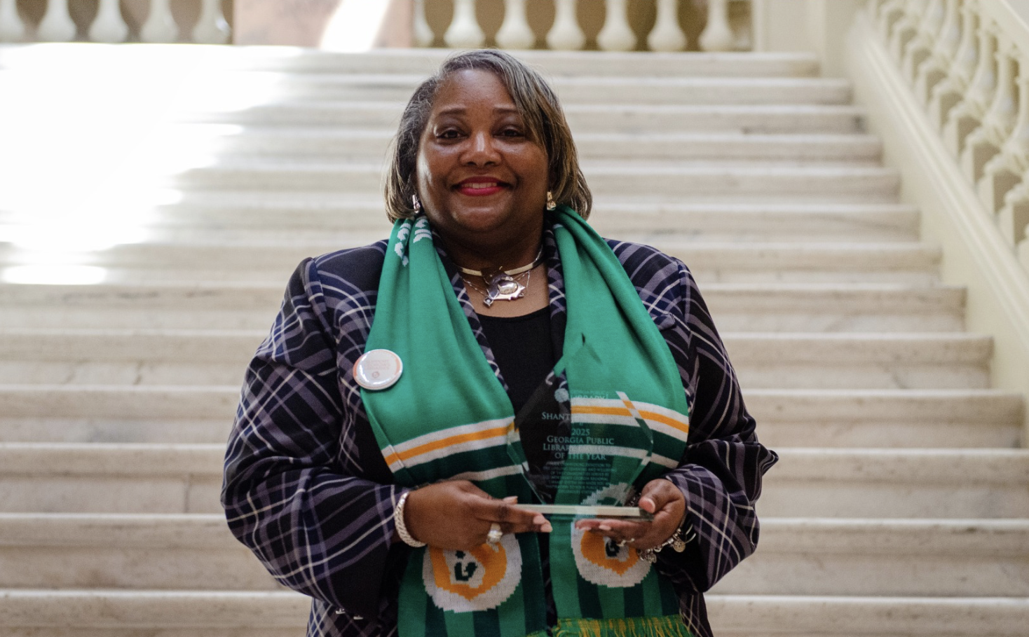 Grant was among the honorees recognized by Gov. Brian Kemp during a Georgia Library Champion Awards ceremony at the state Capitol on March 9, 2026. (Georgia Public Library Service/Facebook)