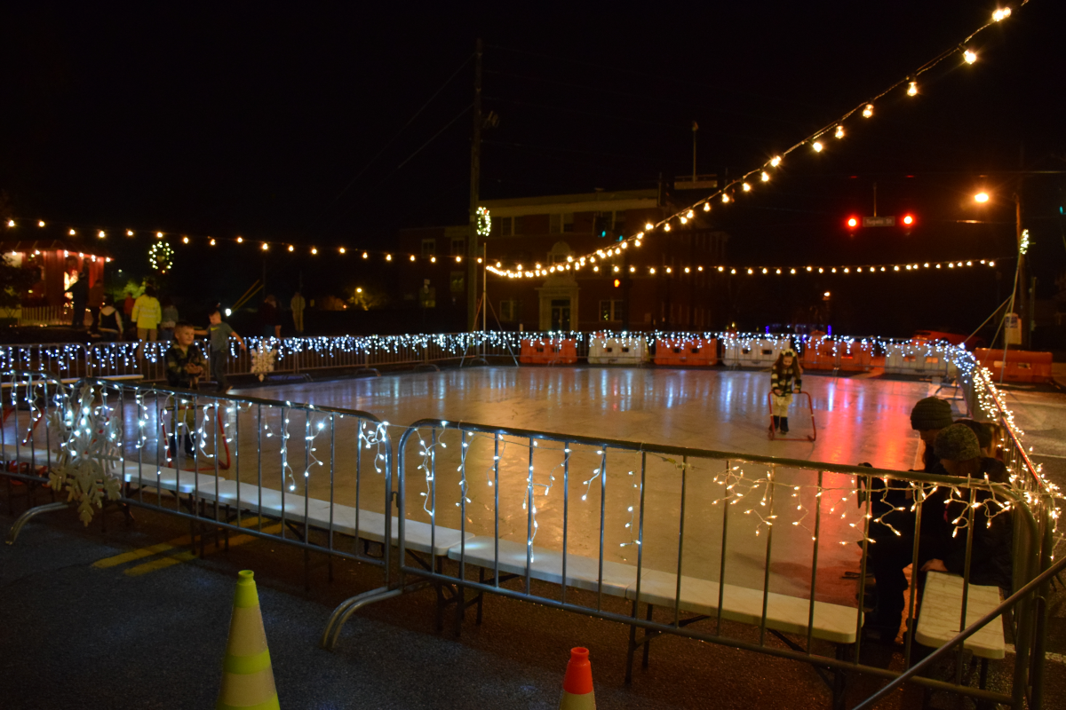 The cool, rainy weather kept many people away. Still, those who did turn out felt the warmth of the holidays. They strolled through the lights, shopped, and skated as carolers serenaded them.