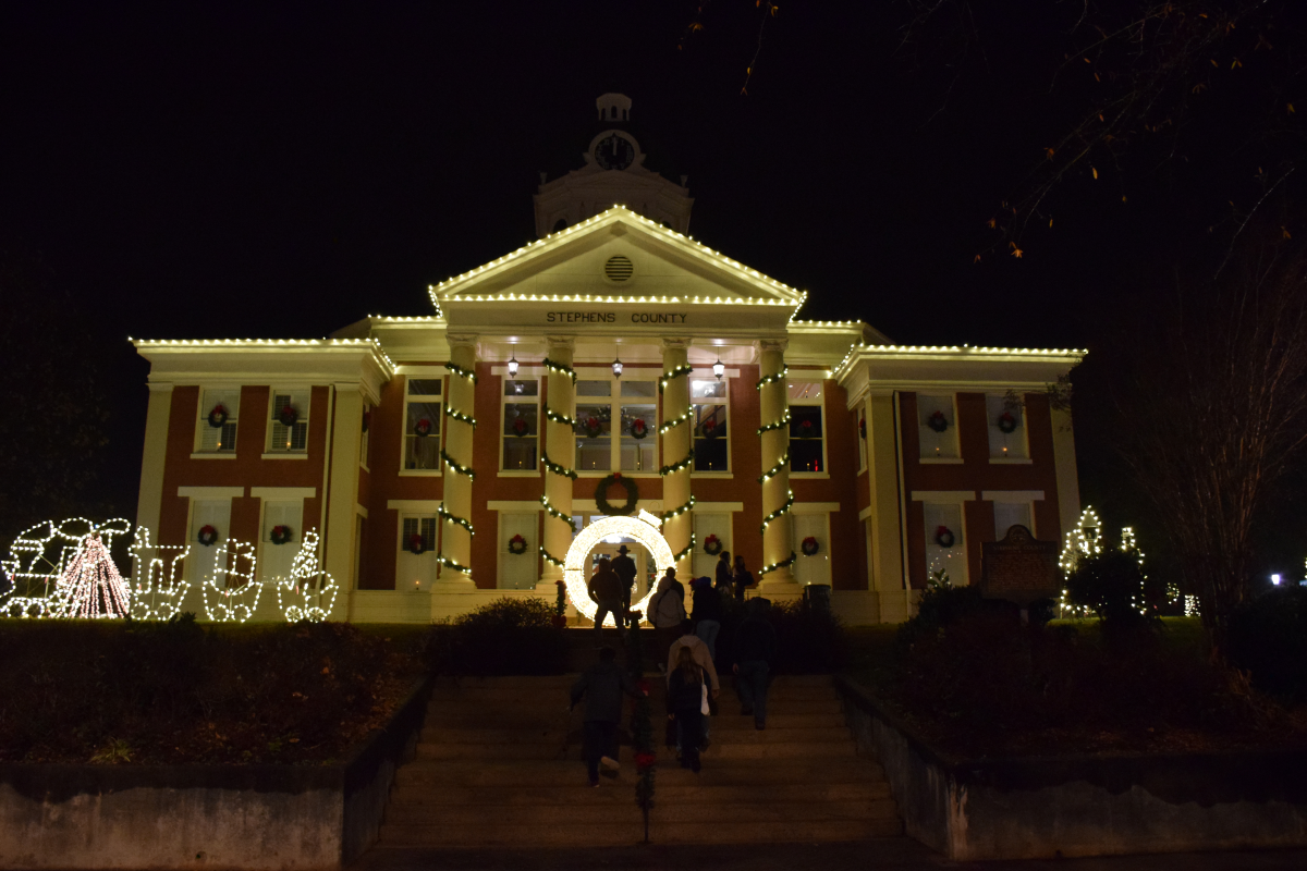 A small but cheerful crowd gathered Friday night in Toccoa for the annual Christmas tree lighting on the historic Stephens County Courthouse lawn. The event was part of the city’s annual Christmas Fest.