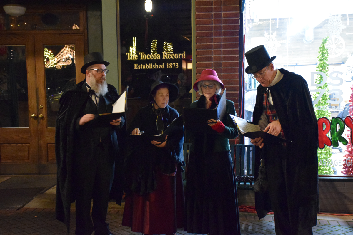 Victorian Carolers from the Toccoa Presbyterian Church, from left: Doug Torrante, Janice Parker, Pat McGarvey, and Kevin Hellenga.