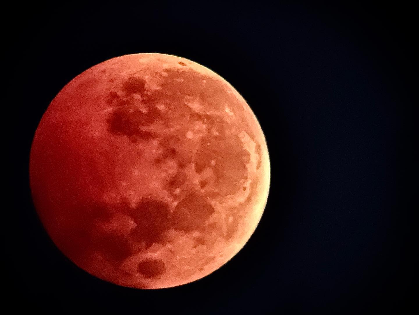 The eclipse began shortly after 4 a.m. and reached totality around 5:16 a.m. It lasted 85 minutes, during which time the darkened moon appeared a deep coppery red. The color comes from light refracting through the Earth’s atmosphere and onto the lunar surface.
