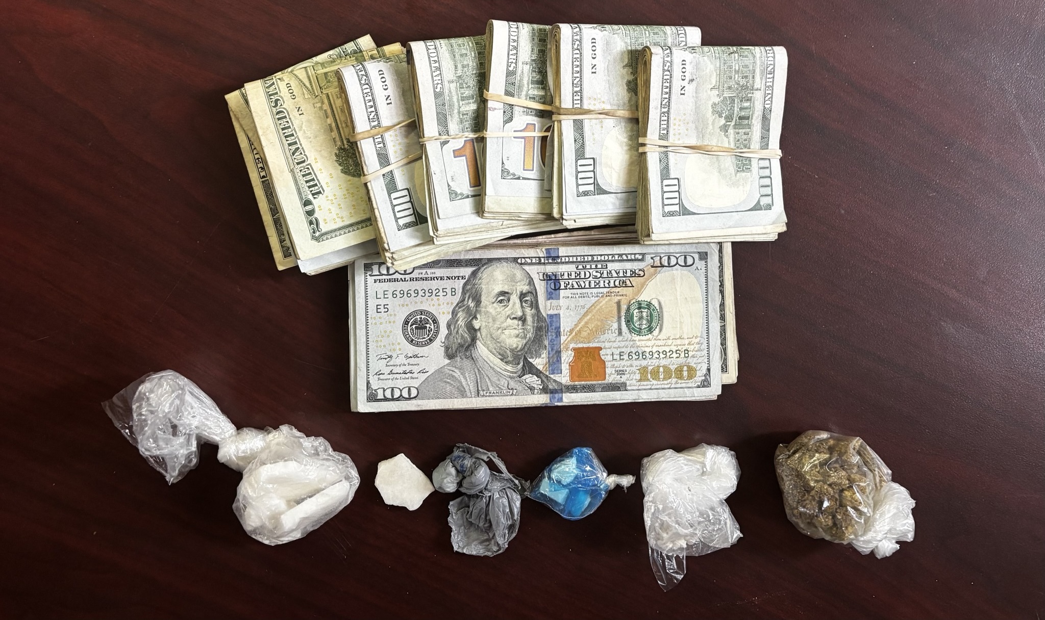 A search of the SUV turned up approximately 15.77 grams of suspected crack cocaine, 1.6 grams of suspected fentanyl, six suspected oxycodone pills, seven grams of suspected marijuana, packaging materials, and $6,257 in cash.
