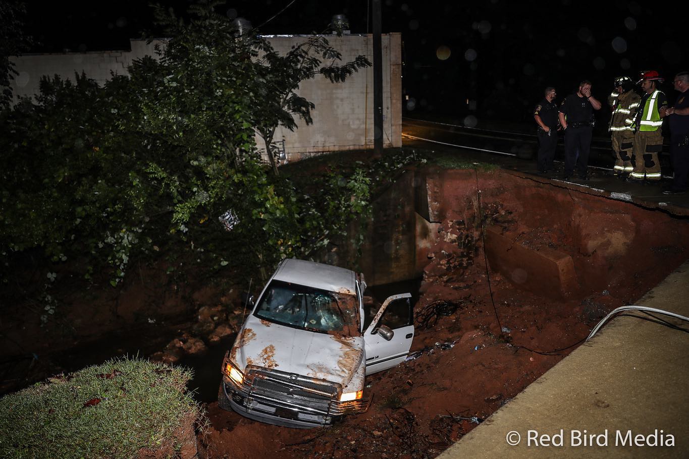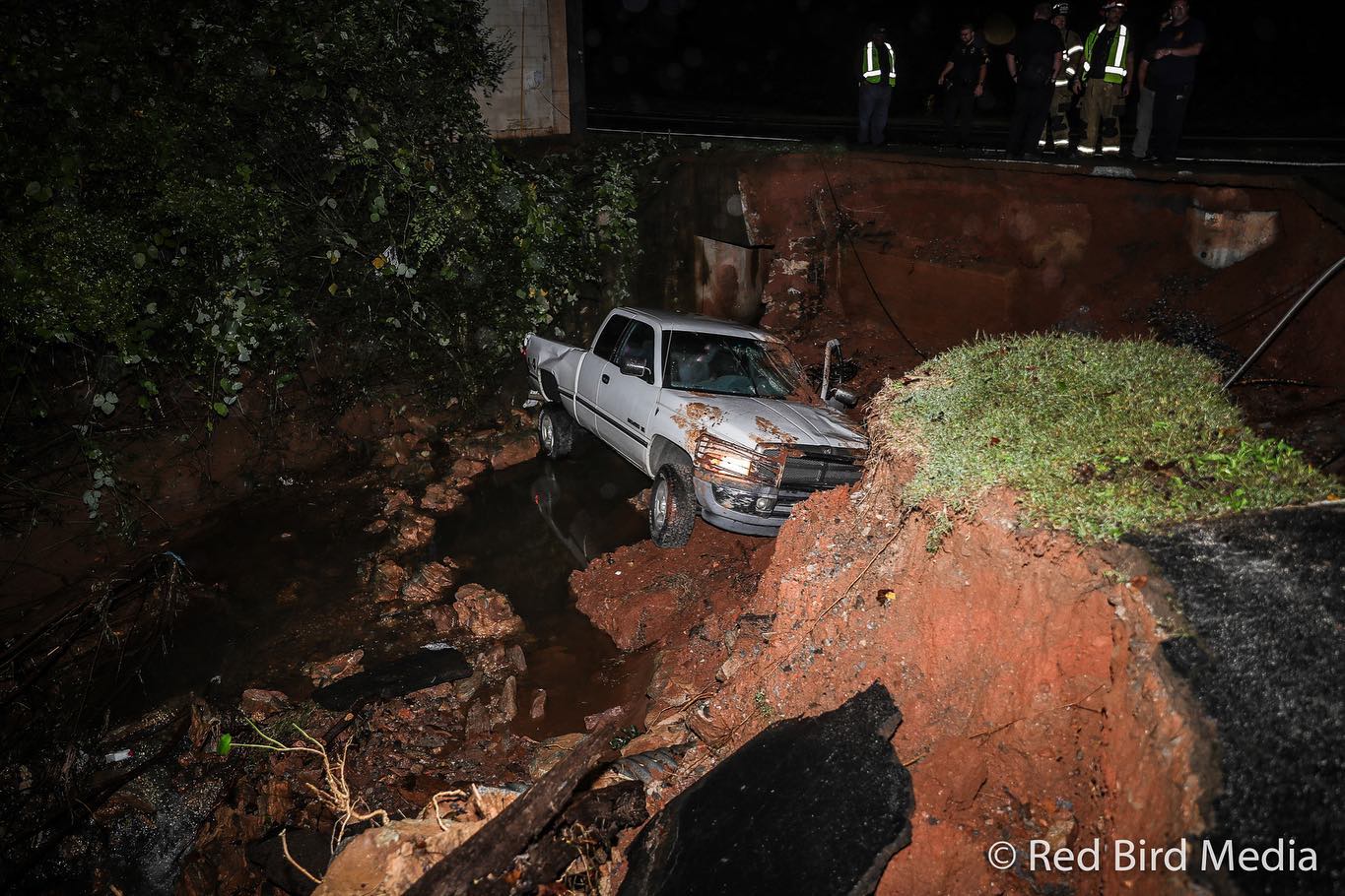According to officials, a pickup truck driver early Monday disobeyed a barricade blocking a section of Irvin Street near Level Grove Road. As the driver attempted to maneuver around a second barricade, they drove off the washed-out shoulder of the road and landed in the creek below.