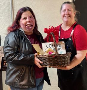 Next stop was to swing by The Caffienery where owner, Julie Adams, presented her with a delicious basket of coffee and other goodies. She immediately called her husband to make a date for coffee with him tomorrow. How sweet!