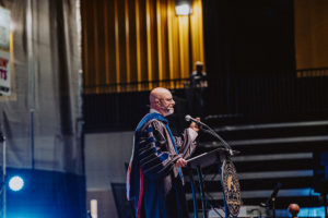 The chapel audience then heard from Dr. Emir Caner, President of TMU, as he shared how the foundation of the institution, despite the turmoil that was going on in the world during that time, was prayer and true biblical rest.