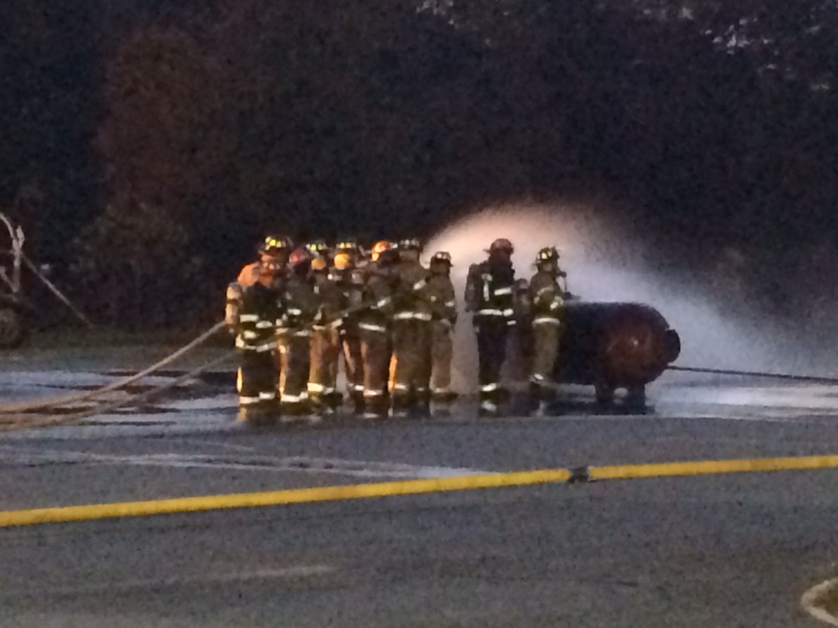 Clarkesville Fire Chief Jerry Palmer was among those on hand for last night’s event. He led teams of firefighters from throughout Habersham in the liquified petroleum (LP) tank fire simulation and training exercise. “It’s not training we get to do all the time so when we get the opportunity we want to jump on it,” Palmer says. “Tonight, the big plus is we get to show it to the community. We get to show them what we do as individuals and as a group.” He adds, “We probably influenced a couple of future firefighters tonight, so, it’s been a good night. It’s been a lot of fun.”