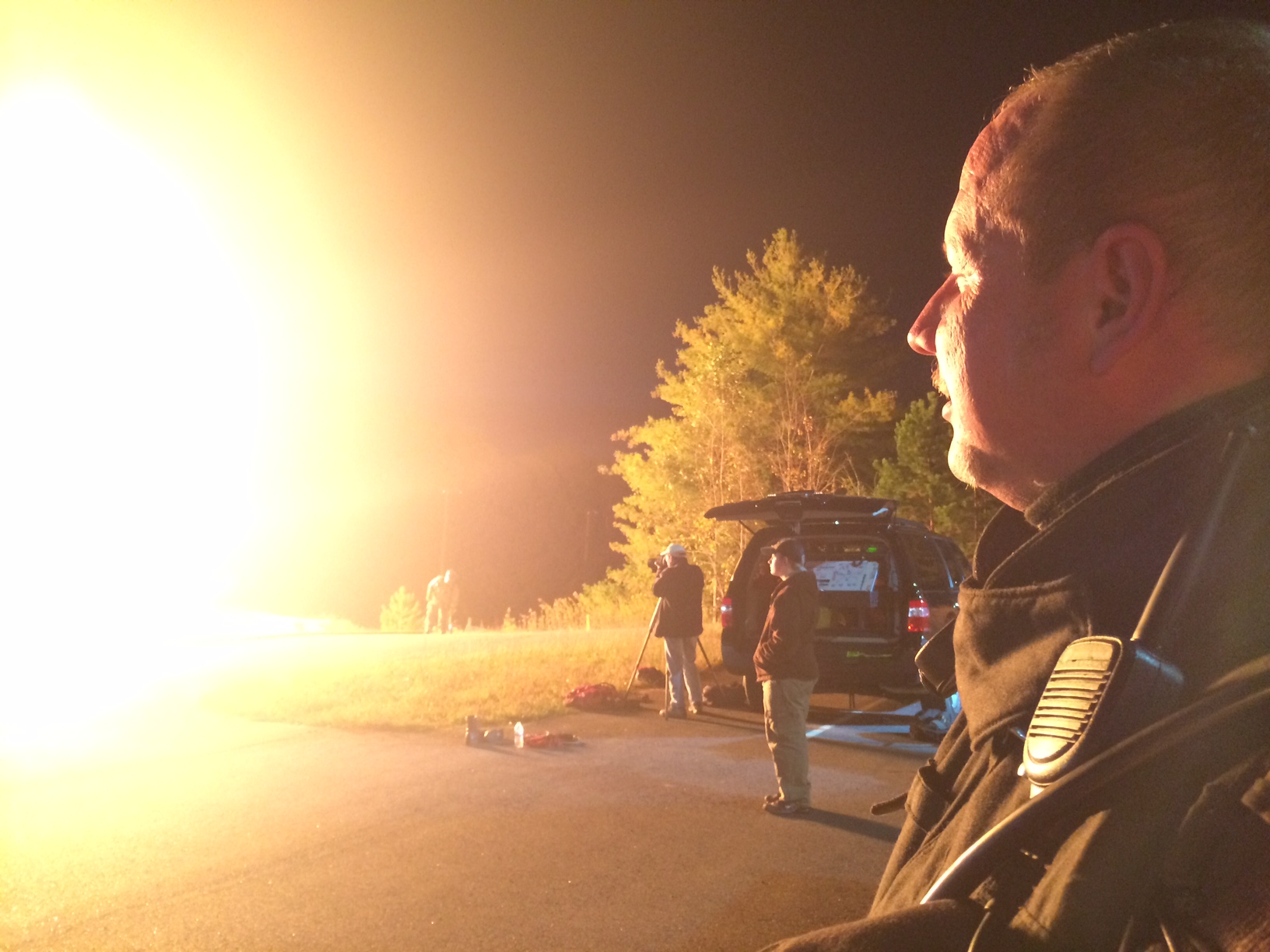 Christy Sprinkle of Clarkesville knows a thing or two about living life “on the fly.” Her husband, Kevin, and son, Austin, are both firefighters. She says she prefers the controlled setting of last night’s burn to the uncontrolled fires they face on the job. “I know they go through a lot and can be called out at any moment, at any time of the day, to go through this.”