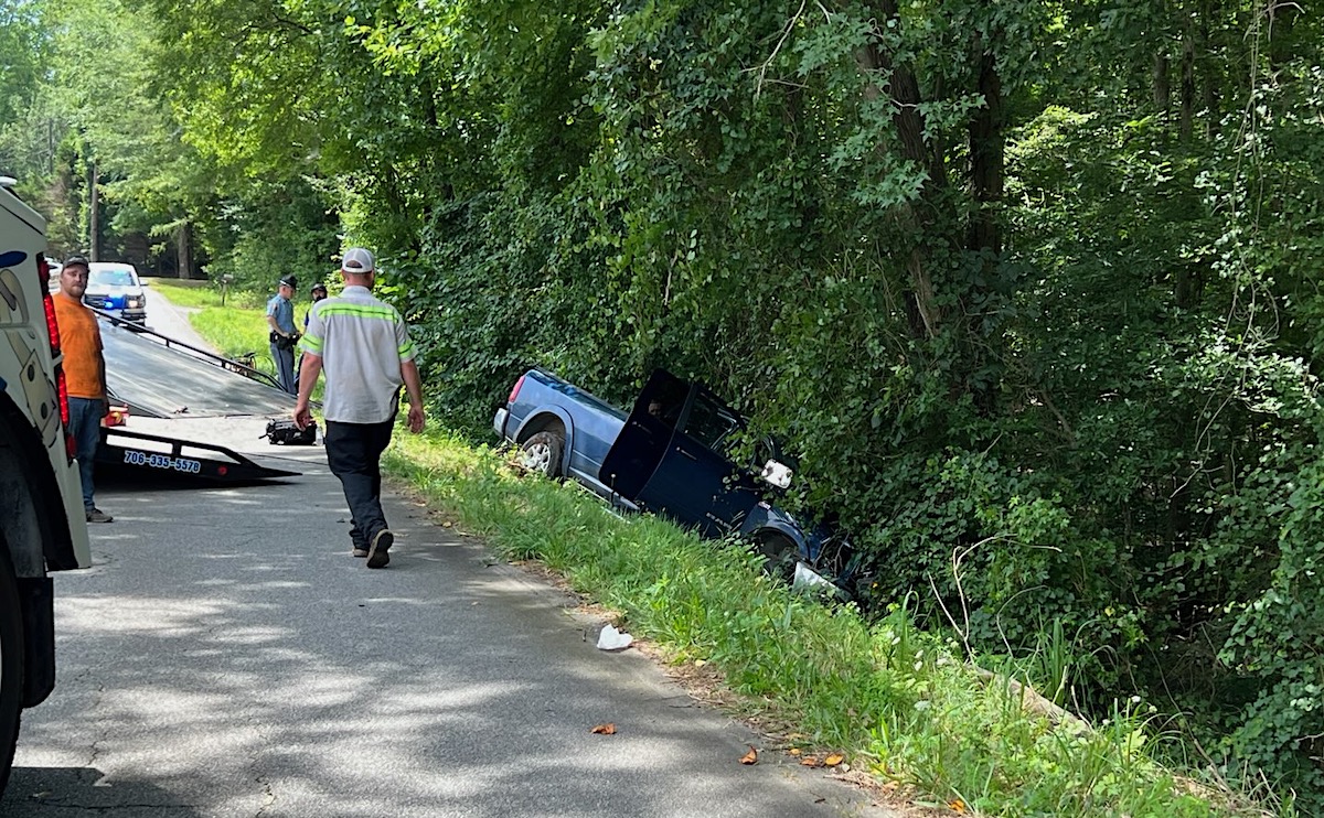 A pickup truck ran off the road and down an embankment. First responders stabilized the child. EMS transported the young patient to Northeast Georgia Medical Center in Gainesville in stable condition.