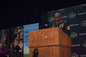Friday afternoon, the first sign that something unusual was happening at Habersham Central High School was the presence of a large vehicle in the parking lot of the auditorium, with official “U.S. Army” lettering on every visible surface. Indoors, uniformed Army officials were standing on the stage of the auditorium. The Habersham Band of Blue – with their instruments – was seated in the auditorium, waiting for one of its own members to receive an award presented to only 125 high school students in the nation. The upcoming ceremony would be broadcast – live – to every classroom in the school.