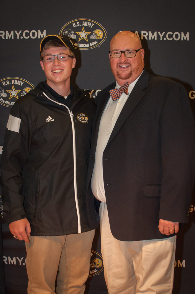 Senior Dillon Caudell, son of Doug and Donna Caudell of Mt. Airy, had been chosen as a member of the U.S. Army All-American Band for 2015. Onstage Friday, he received from the U.S. Army officers the jacket he will wear as he marches and plays bass drum in the All-American band on Saturday, January 9, in San Antonio, Texas, at half-time when the U.S. Army All-American football game is held.