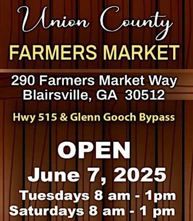The Union County Farmers Market in Blairsville will launch its 2025 season on Saturday, June 7. The hours are from 8 a.m. to 1 p.m.