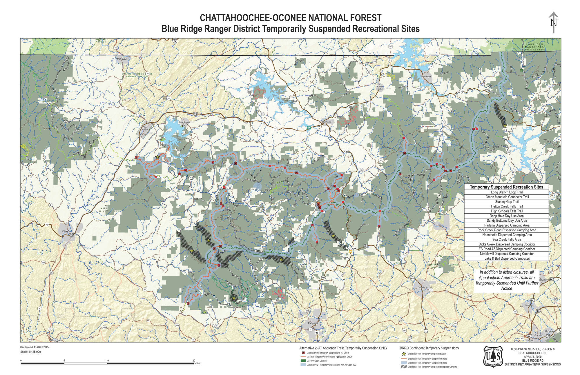 The US Forest Service announced today it is temporarily shutting down all dispersed camping corridors, day-use areas, trailhead facilities and other recreation sites on the Blue Ridge Ranger District to protect public health and safety.