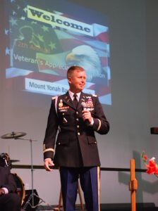 Lieutenant Colonel Richard Hobson, who is the JROTC instructor at White County High School, spoke to the group and shared his experience working with the youth and helping them prepare to serve our county. Hobson said, veterans like those sitting in the auditorium stands for the backbone of the country and makes it great. He said about the student he works with, “ Regardless of what situation anybody says this country is in, or that generation or this generation, hey the generation coming up are ready to stand up for you and ready to be there just like you were.”