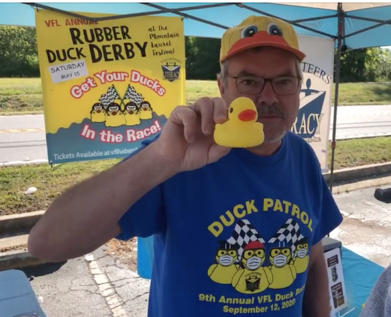 Before the race even starts, hundreds of volunteer hours are devoted to cleaning and sorting the little yellow rubber ducks, selling tickets and sponsorships, ordering supplies and Duck Patrol t-shirts, coordinating the ancillary DecADuck contest, and building a float for the Mountain Laurel Parade.
