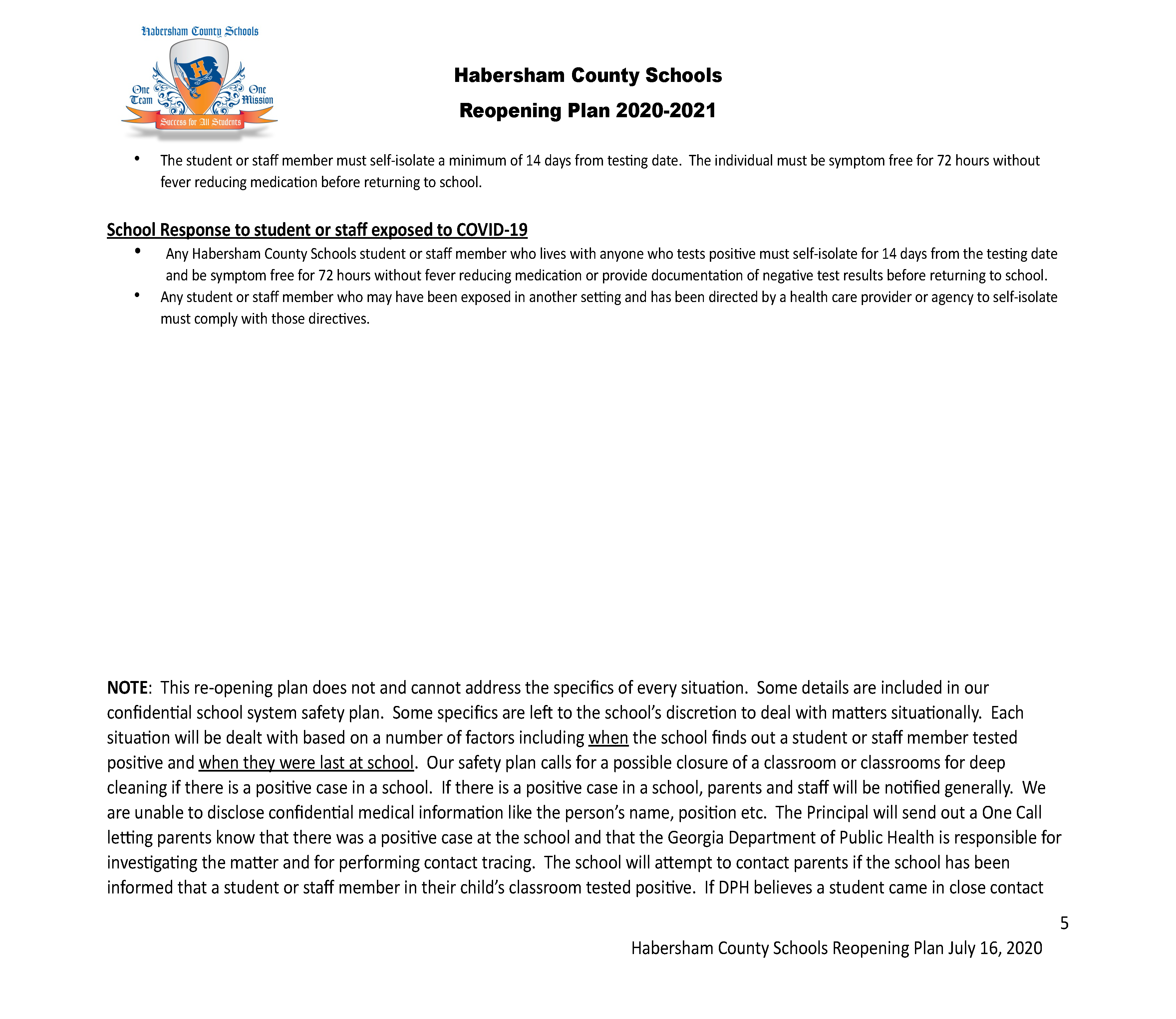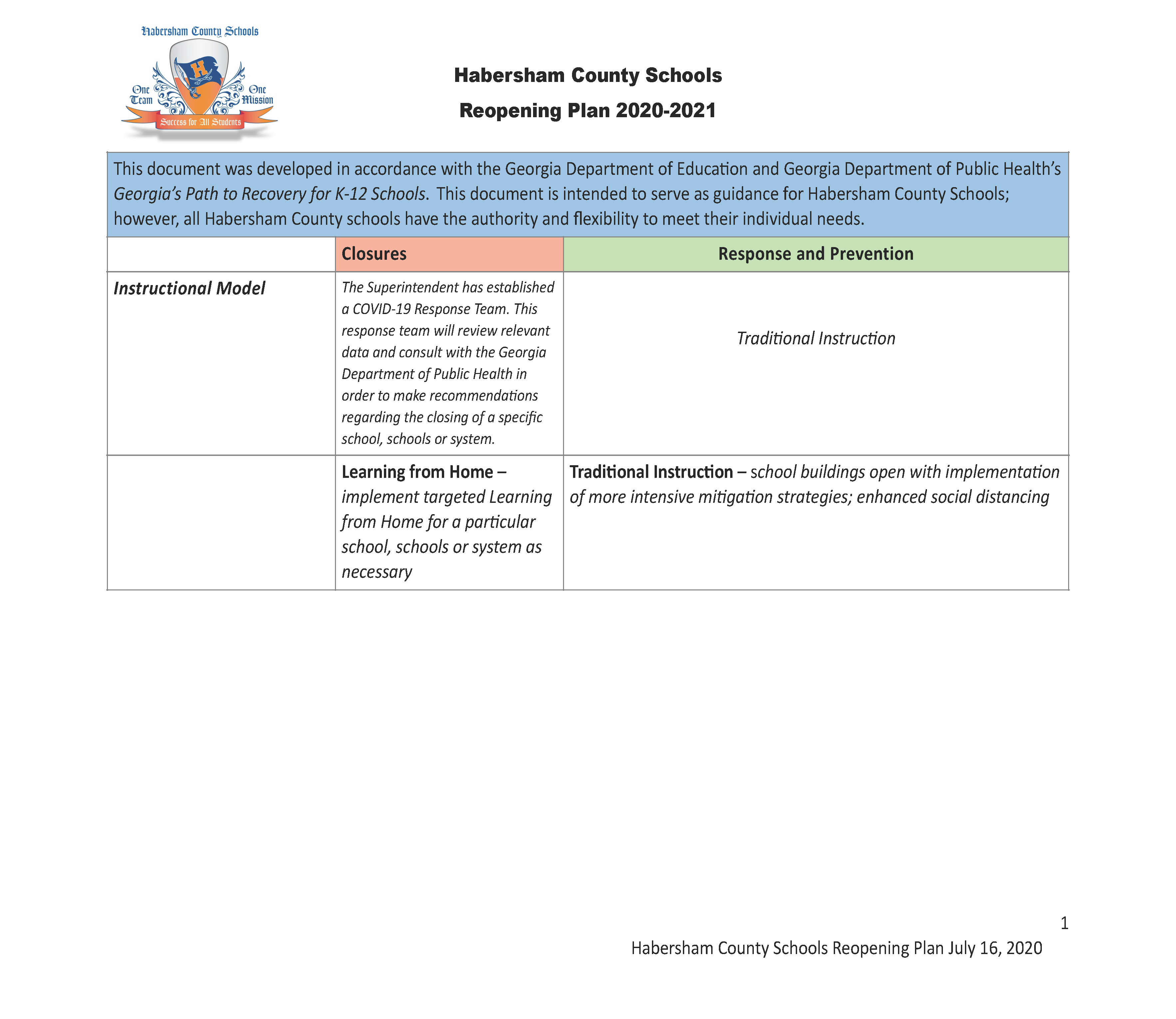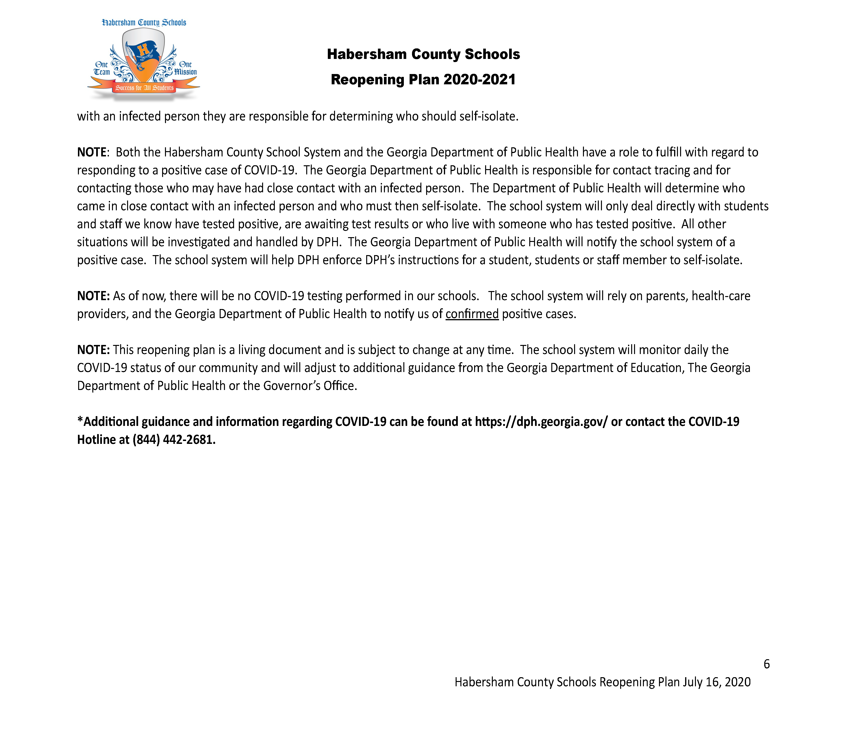 Habersham County School’s COVID-19 Response Team, which is made up of system leaders and healthcare experts, met with a key official from the Georgia Department of Public Health and sought their input on developing this plan:
