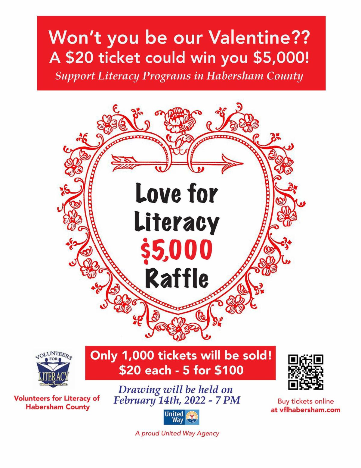 There’s a new raffle opportunity in town and it could put $5,000 in your bank account! Volunteers for Literacy of Habersham County kicked off its first annual Love for Literacy $5,000 Raffle in November and will hold the drawing to determine the winner on February 14 – Valentine’s Day.