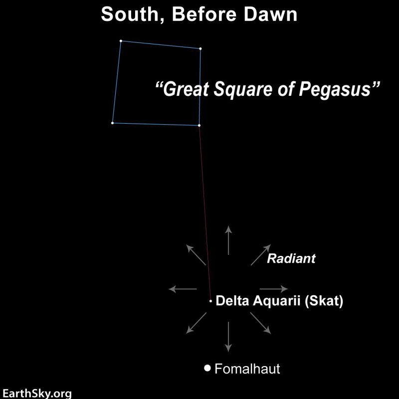 The radiant comes from a fairly dim star, so you can use the constellation Pegasus and the bright star Fomalhaut to find the radiant point. You won’t need to be able to pinpoint this to see the meteors, though, they can appear anywhere in the sky and trace back to this point. You’ll likely also see a few early Perseids as well, so reaching 20-25 meteors per hour should be fairly easy from a dark sky site!